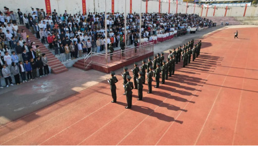 全体人员入场后,举行升旗仪式,全体师生行注目礼(预征班敬军礼),奏唱国歌。