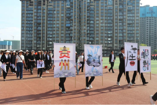伴随着《运动员进行曲》激昂的旋律,贵州工贸职业学院第四届运动会拉开序幕。国旗方阵和校旗方阵首先入场,紧接着彩旗方阵、裁判员方阵、智造工程分院方阵、现代商务分院方阵、健康与体育分院方阵、艺术分院方阵踏着轻快的步伐,以饱满的精神面貌入场。