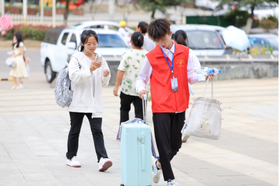 新生报到期间,学校领导冒雨深入各校区迎新报到现场、宿舍、食堂和车站,了解新生报到情况,与家长和新生亲切交谈,并慰问迎新工作人员,对迎新工作给予了高度肯定。学校迎新工作人员和各职能部门负责人热情耐心地为新生和家长答疑解惑。身着红色马甲的学生志愿者穿梭在车站、报到现场和宿舍区,他们热情洋溢、安全有序地组织新生办理报到手续,并热情引导学生和家长参观校园,让大家感受贵工贸文化底蕴和人文情怀。