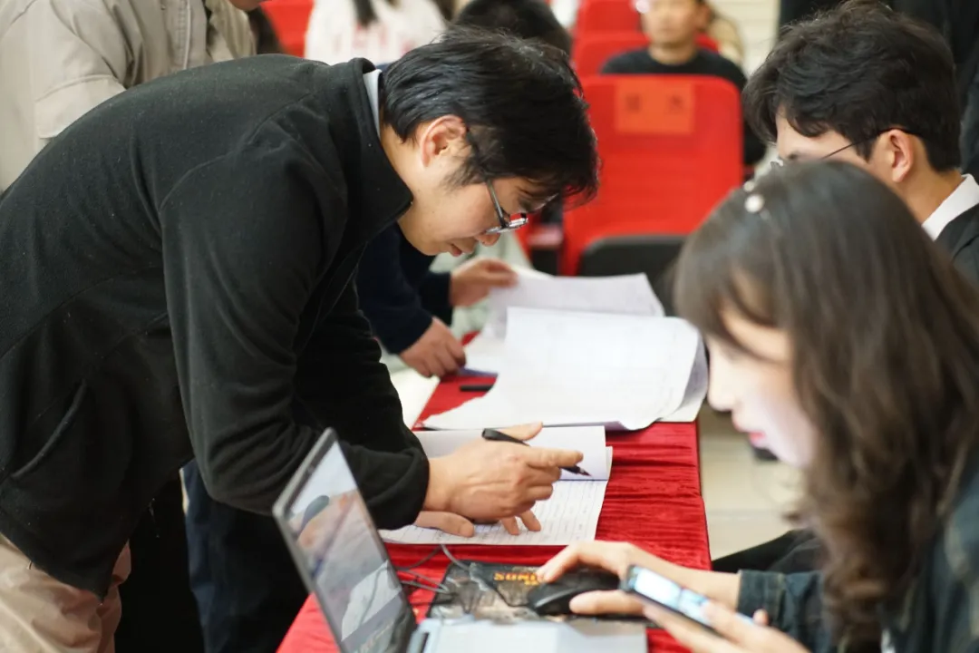 校党委委员、财务总监曾隆槐宣布开始发放奖金,获奖师生在工作人员的指引下有序上台签署领取表。