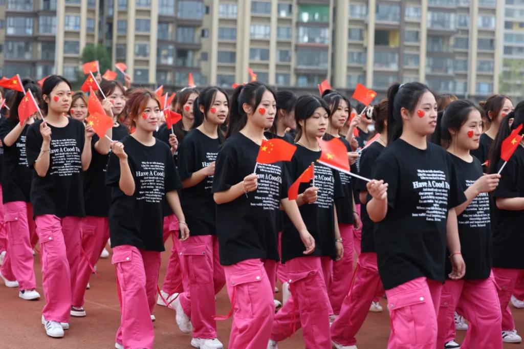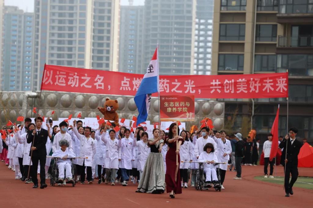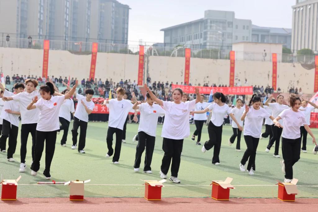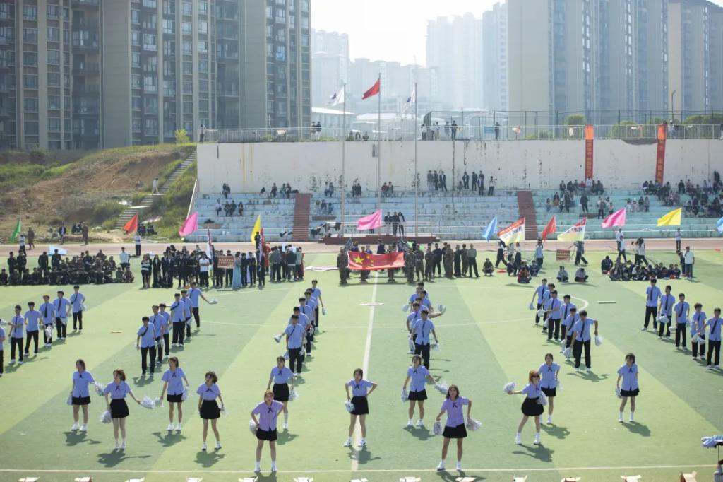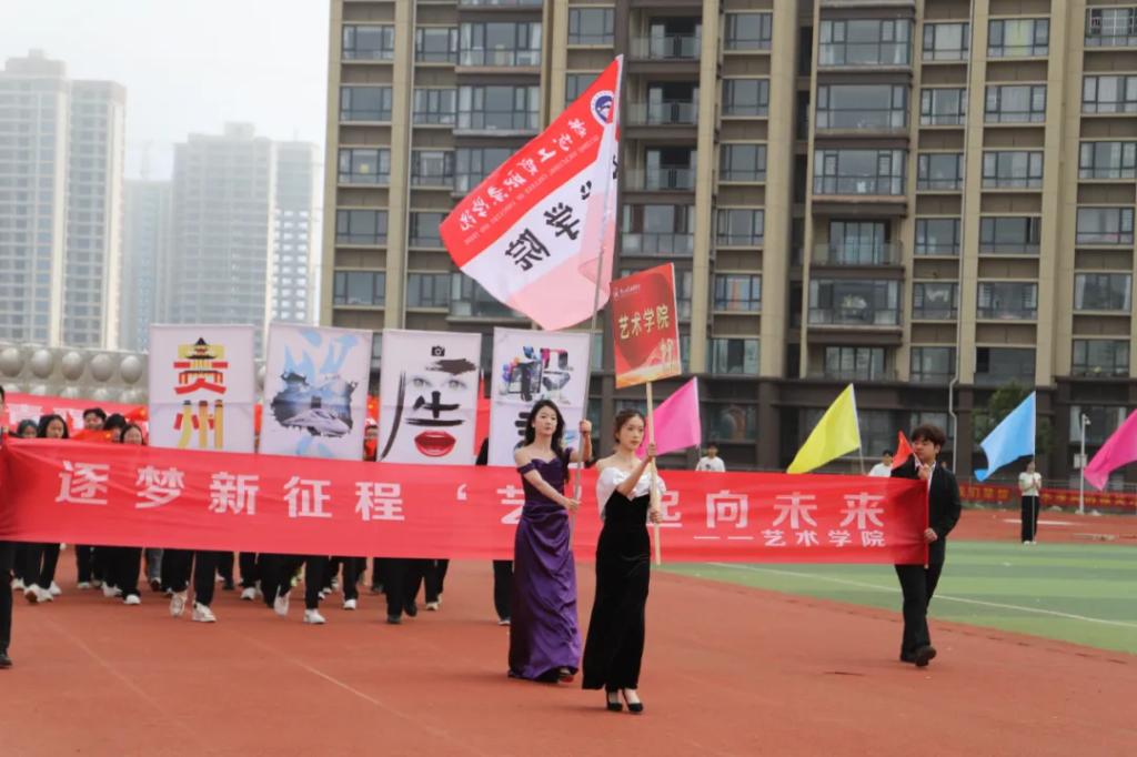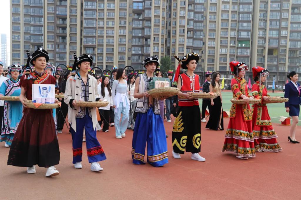 生而逢盛世,青年当有为。草海湖畔,书写着贵州工贸职业学院师生再创辉煌的凌云壮志。5月23日,贵州工贸职业学院第五届校园运动会开幕式在学校田径场正式拉开帷幕。校领导徐锋、李建萍、聂立新、李新发、勒系琳、曾隆槐、杨金钱,校属各单位负责人在主席台就坐,全体师生参加。校党委委员、副校长杨金钱主持开幕式。伴随着《运动员进行曲》激昂的旋律,贵州工贸职业学院第五届运动会拉开序幕。国旗方阵和校旗方阵首先入场,紧接着彩旗方阵、裁判员方阵入场、智造工程学院(新能源产业学院)方阵、现代商务学院(乡村振兴产业学院)方阵、生态医药与康养学院方阵、国防教育与体育学院方阵、艺术学院方阵踏着轻快的步伐,以饱满的精神面貌入场。