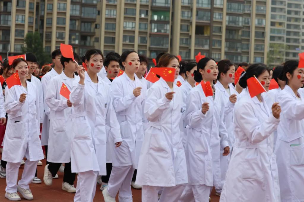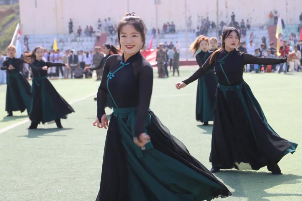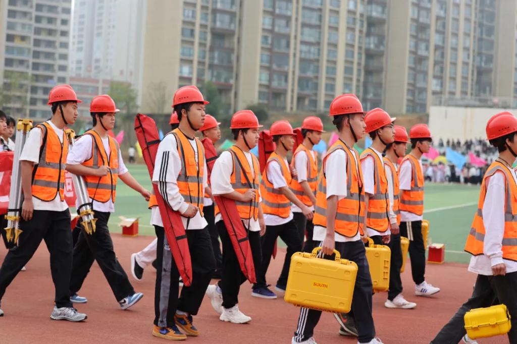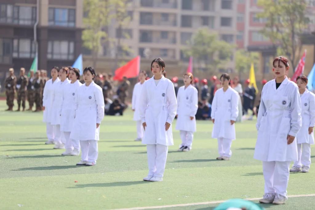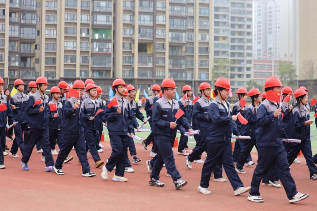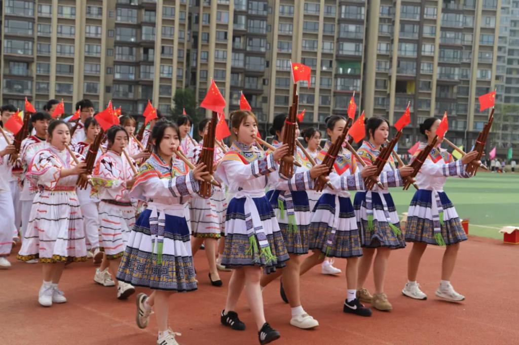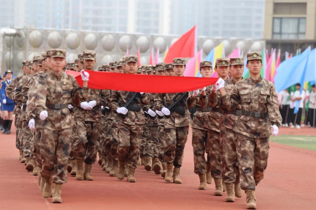 生而逢盛世,青年当有为。草海湖畔,书写着贵州工贸职业学院师生再创辉煌的凌云壮志。5月23日,贵州工贸职业学院第五届校园运动会开幕式在学校田径场正式拉开帷幕。校领导徐锋、李建萍、聂立新、李新发、勒系琳、曾隆槐、杨金钱,校属各单位负责人在主席台就坐,全体师生参加。校党委委员、副校长杨金钱主持开幕式。伴随着《运动员进行曲》激昂的旋律,贵州工贸职业学院第五届运动会拉开序幕。国旗方阵和校旗方阵首先入场,紧接着彩旗方阵、裁判员方阵入场、智造工程学院(新能源产业学院)方阵、现代商务学院(乡村振兴产业学院)方阵、生态医药与康养学院方阵、国防教育与体育学院方阵、艺术学院方阵踏着轻快的步伐,以饱满的精神面貌入场。