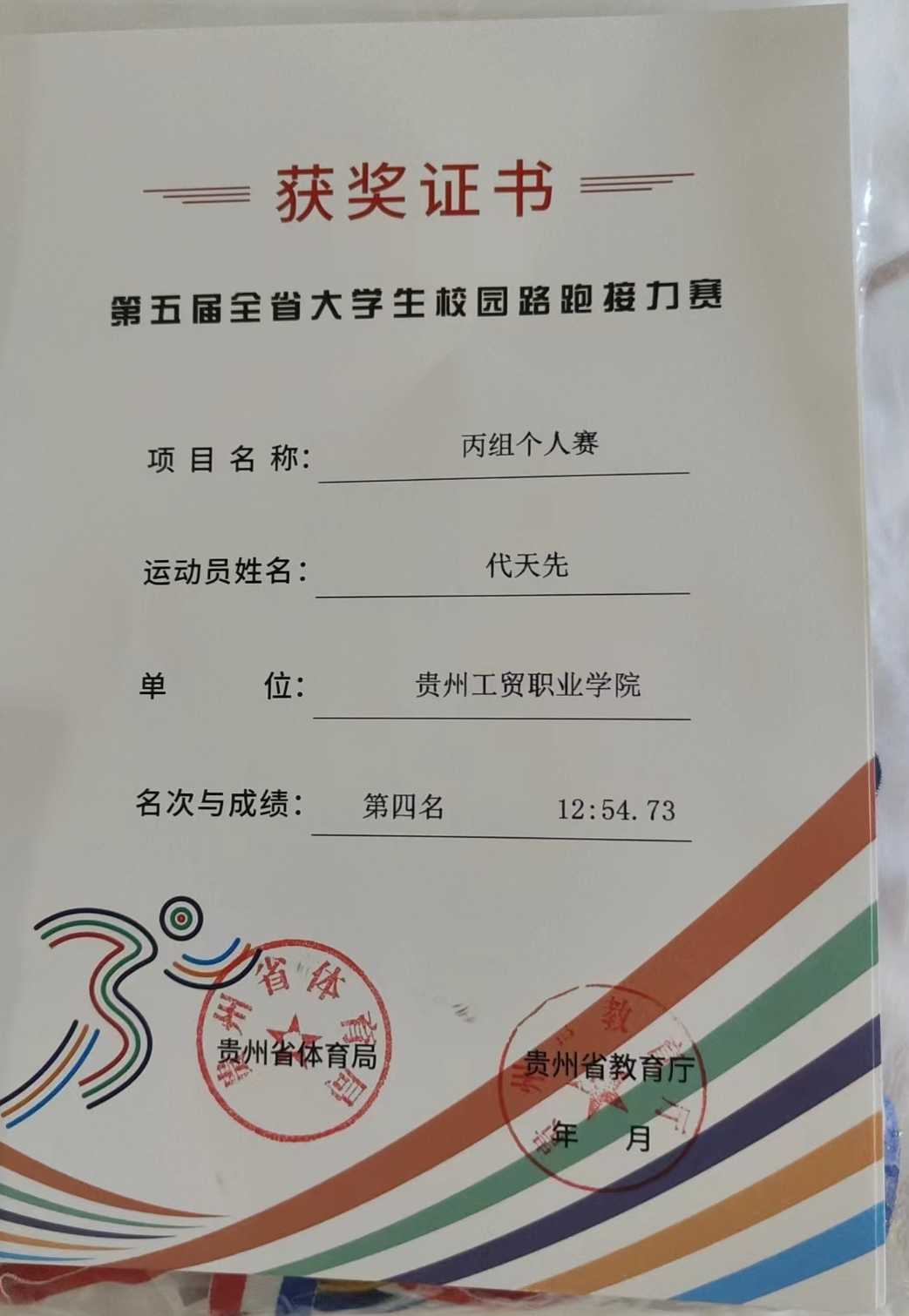 为贯彻落实中共中央办公厅、国务院办公厅《关于全面加强和改进新时代学校体育工作的意见》和国家体育总局、教育部《关于深化体教融合促进青少年健康发展的意见》,推动我省千万师生阳光体育运动蓬勃开展,省体育局、省教育厅6月14日在遵义医科大学举行“奔跑吧•少年”第五届全省大学生校园路跑接力赛。我校学子在此次活动中荣获高职高专组全省第一名,团体一等奖。在丙组女子个赛前八名中分别斩获第一,第四的好成绩。