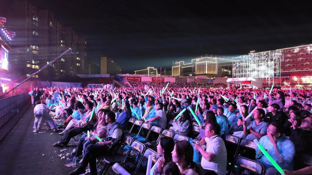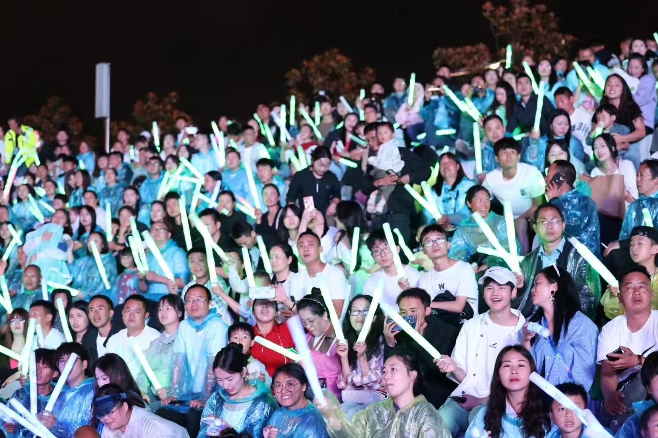 8月4日晚,贵州工贸职业学院足球场闪耀成一片荧光海洋,“巨星行动 情定草海”群星演唱会在此刻激情唱响。张信哲、陈雅森、邱永传、王琪、李袁杰等多位歌手倾情演绎30余首经典歌曲,引得现场上万名观众齐声合唱。