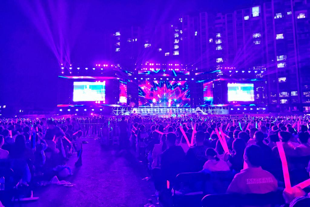 观众手中挥舞着的荧光棒跟随着中控和舞台律动,它们如同星星点点的火光,在黑暗中闪耀着希望与热情。