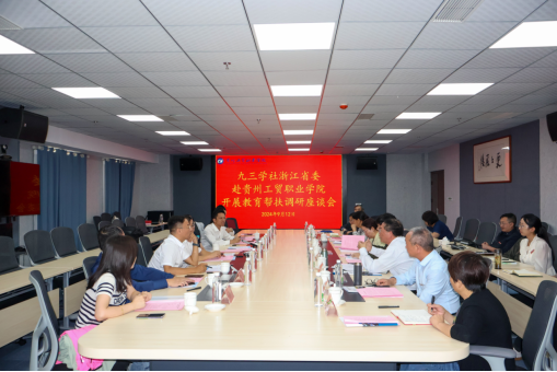 9月12日,全国政协委员、九三学社浙江省委副主委、浙江大学医学院附属第一医院麻醉科主任方向明,九三学社浙江省委内部监督委副主任、浙江金融职业学院院长陈荣达,九三学社浙江省委社会服务部副部长(主持工作)董辉,九三学社贵州省委社会服务处干部汪来,浙江金融职业学院办公室副主任沈建锋,九三学社金华市委专职副主委章宏,嘉兴希尔顿酒店董事长、蓝蜗牛酒店人力资源服务基地创始人董天琼,秦翊科技园(浙江)有限公司董事长石君燕到贵州工贸职业学院调研。校领导李建萍、黄冠迪、李新发、勒系琳等陪同调研。