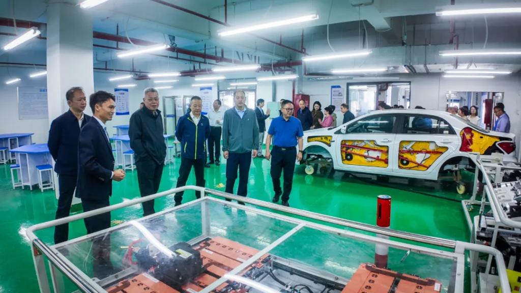 调研组一行先后到汽修工程实训基地、金字塔体育实训基地、工业机器人实训基地、辰海大剧等实验实训基地(室)调研。