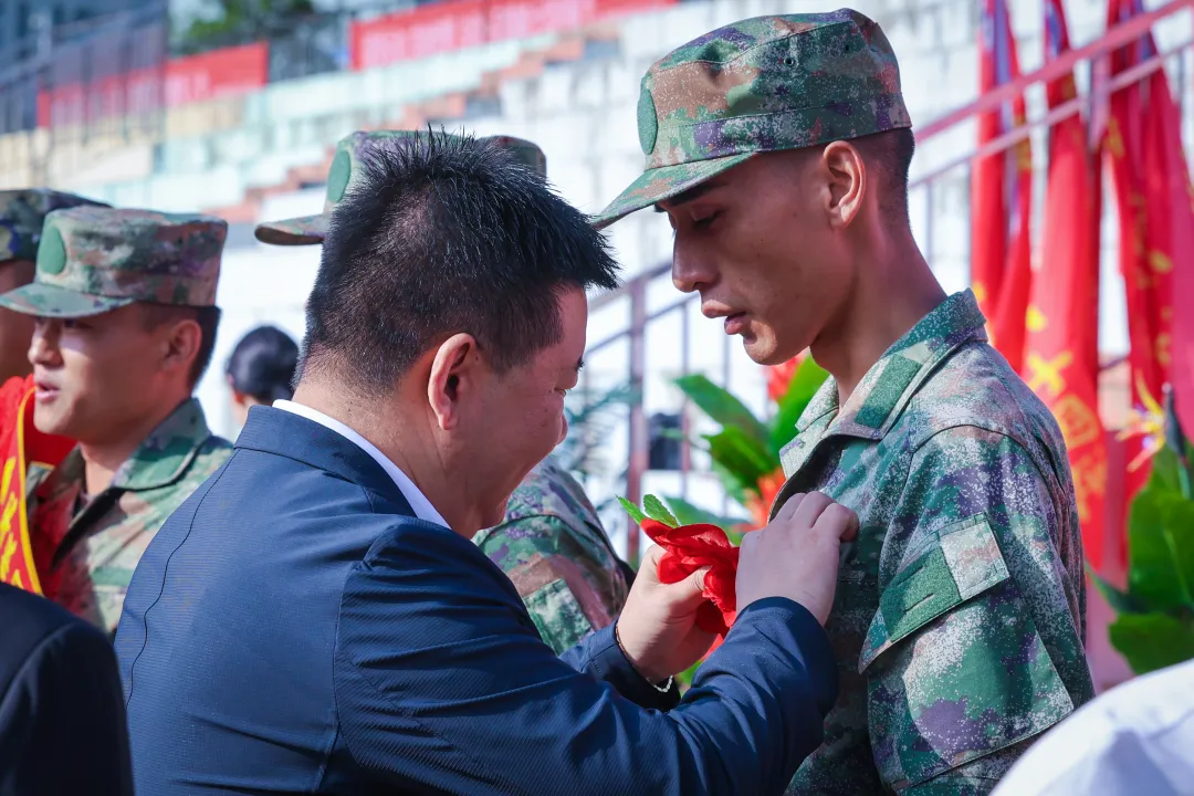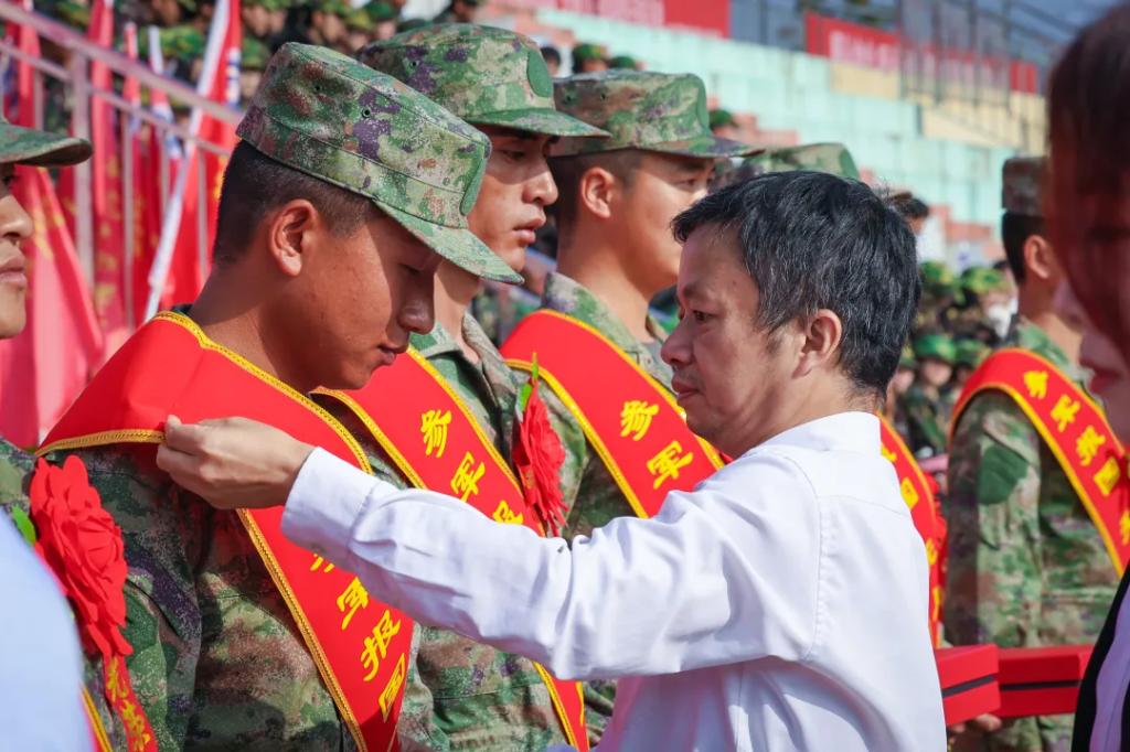 戎装披挂凌云志,青春不负少年郎贵州工贸职业学院举行送兵仪式,勉励新兵扎根军营、建功立业,聂立新、宋新乐、杨金钱为新兵佩戴红花。