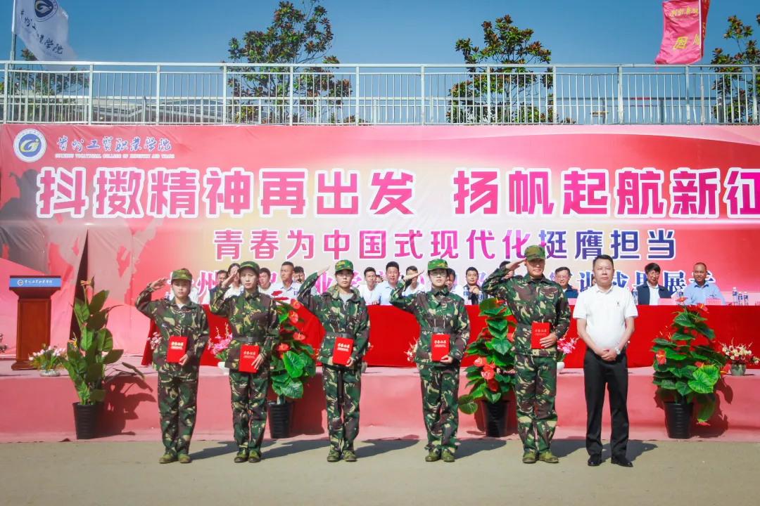 聂立新郑重宣布:贵州工贸职业学院2024级新生军训工作圆满结束!愿2024级工贸学子们,带着高原炽阳下锤炼的意志和汗水铸就的坚韧品格扬起风帆,蓄势启程乘风破浪,走向荣光!