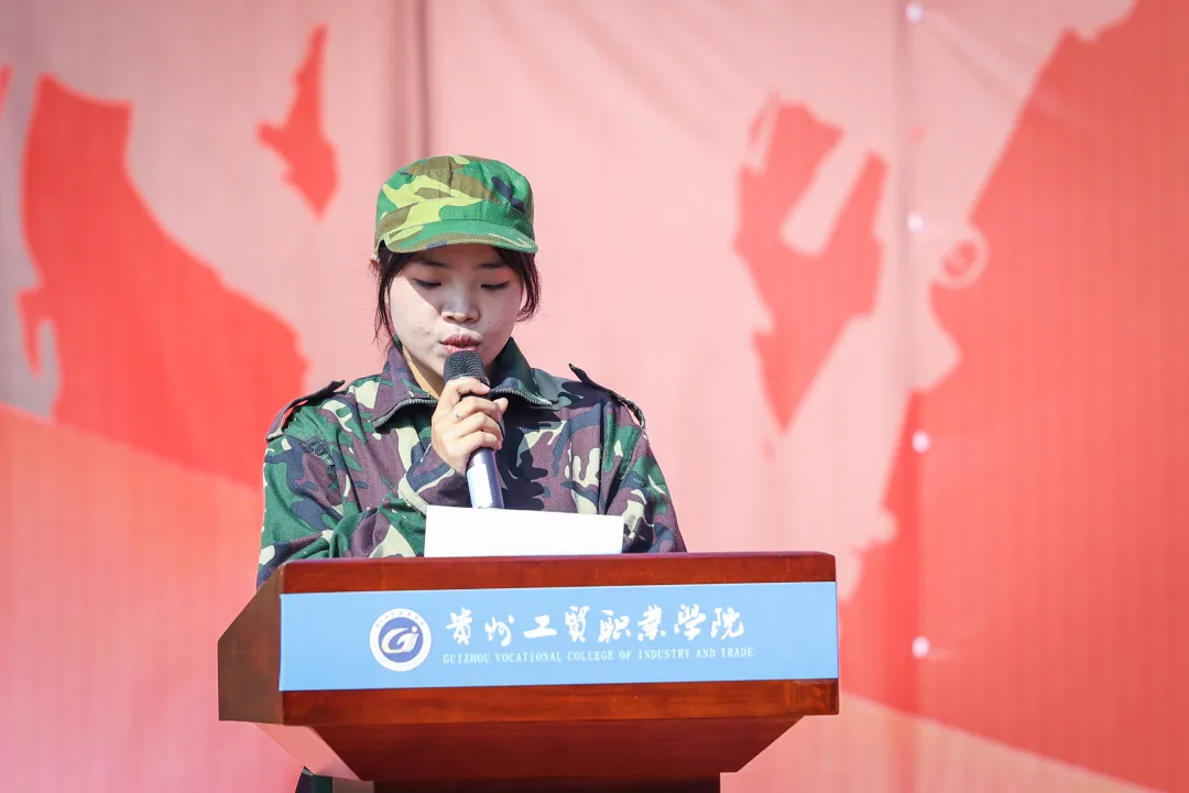 鲜衣怒马少年时,吾辈扬帆正起航。贵州工贸职业学院2024级音乐表演专业温馨同学代表发言。她表示,军训作为开启大学生活的第一课,对于增强同学们的爱国情怀、国防观念,以及锤炼吃苦耐劳的精神、塑造良好的行为习惯,具有不可估量的价值。在以后的学习生活中,更要严格要求自己,严守纪律。