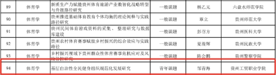 11月17日,贵州省2024 年哲学社会科学规划年度课题拟立项结果揭晓,我校国防教育与体育学院传来喜讯,拟获立项一项课题,且在体育类课题中,我校成为唯一一所立项的专科院校。