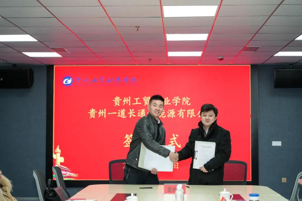 12月11日,贵州一道长通新能源有限公司到贵州工贸职业学院举行签约座谈会。贵州一道长通新能源有限公司总经理盛兆选,法人、副总经理张云舒,副总经理郑乾,人资主管邹德向,开发总监段文超;贵州工贸职业学院理事长黄冠迪,校党委副书记、校长李建萍,校党委委员、副校长李新发,校党委委员、副校长杨金钱及校属相关单位负责人参会。会议由贵州工贸职业学院校党委委员、常务副校长勒系琳主持。