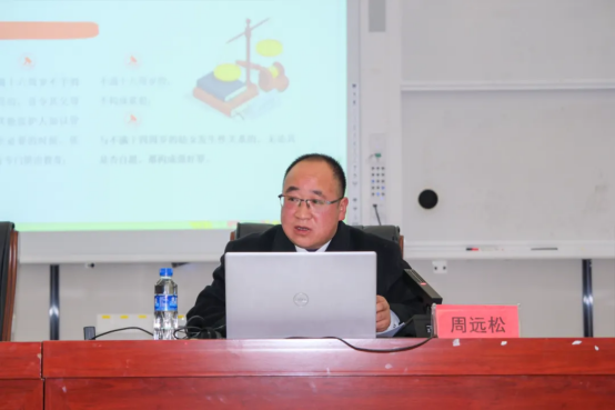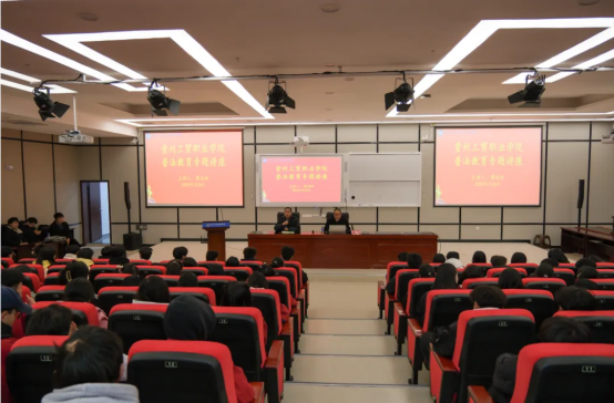 2月26日,威宁自治县人民法院刑事审判庭庭长、贵州工贸职业学院法治副校长周远松为师生们开展以“知法守法 守护青春”为主题的春季开学普法教育专题讲座。讲座由贵州工贸职业学院保卫处处长马永全主持,共300余名师生参加讲座。