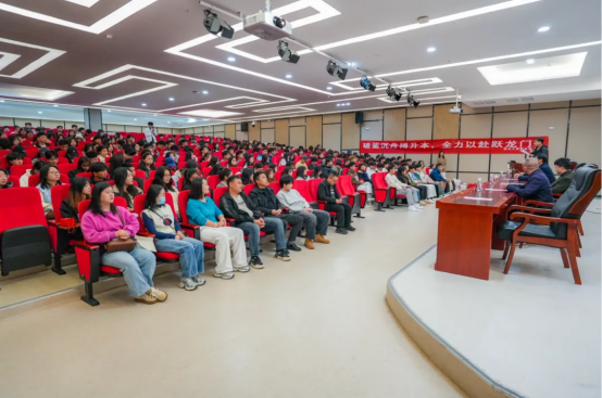 3月27日,贵州工贸职业学院图书馆负一楼报告厅内气氛热烈,2025年专升本送考大会在此启幕。贵州工贸职业学院理事长黄冠迪,校党委委员、常务副校长勒系琳,校党委委员、副校长李新发,校党委委员、副校长宋新乐与全体专升本学子、教师代表齐聚一堂,共同为即将踏上考场的学子送上祝福与鼓励。大会由职培中心教师李静主持。