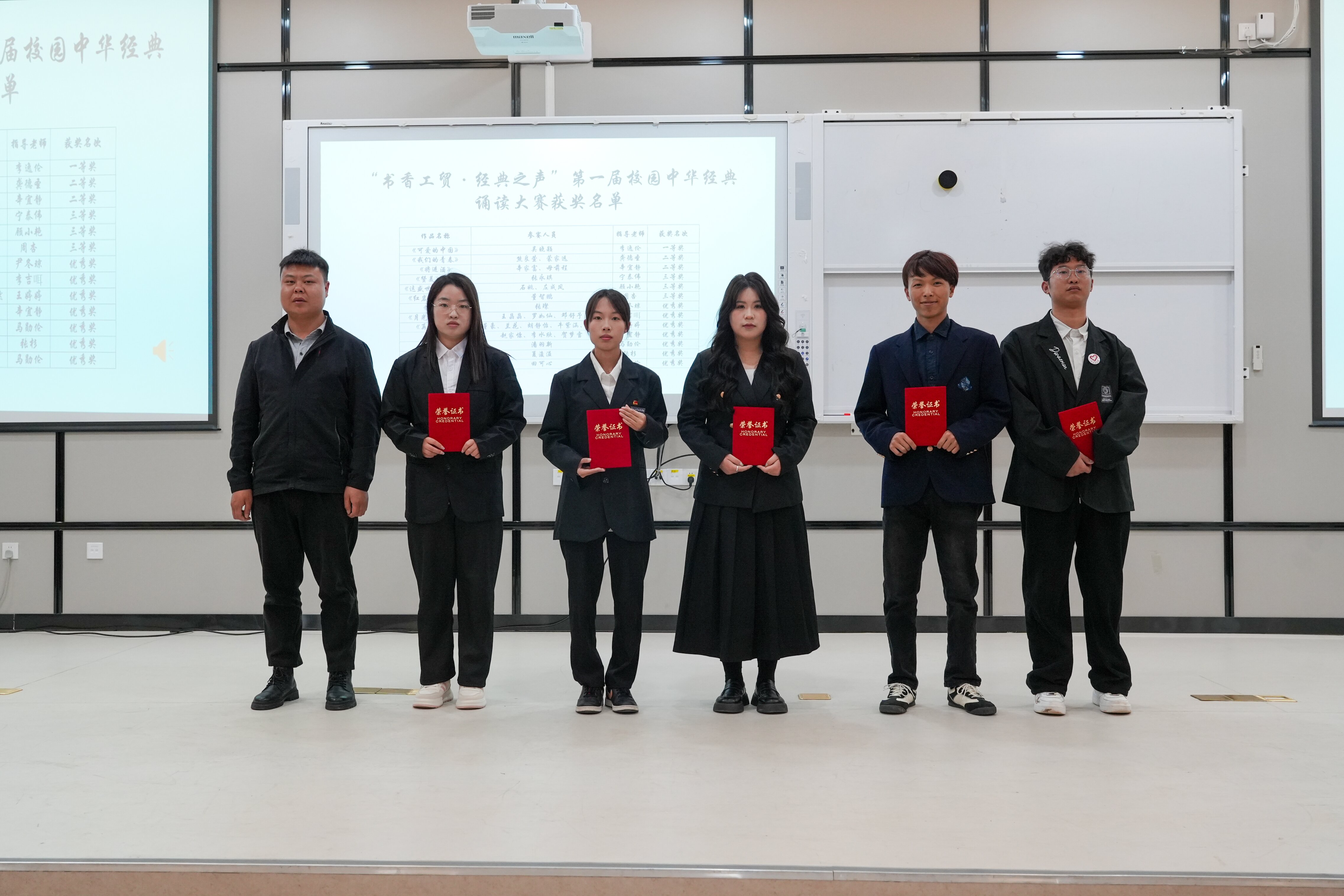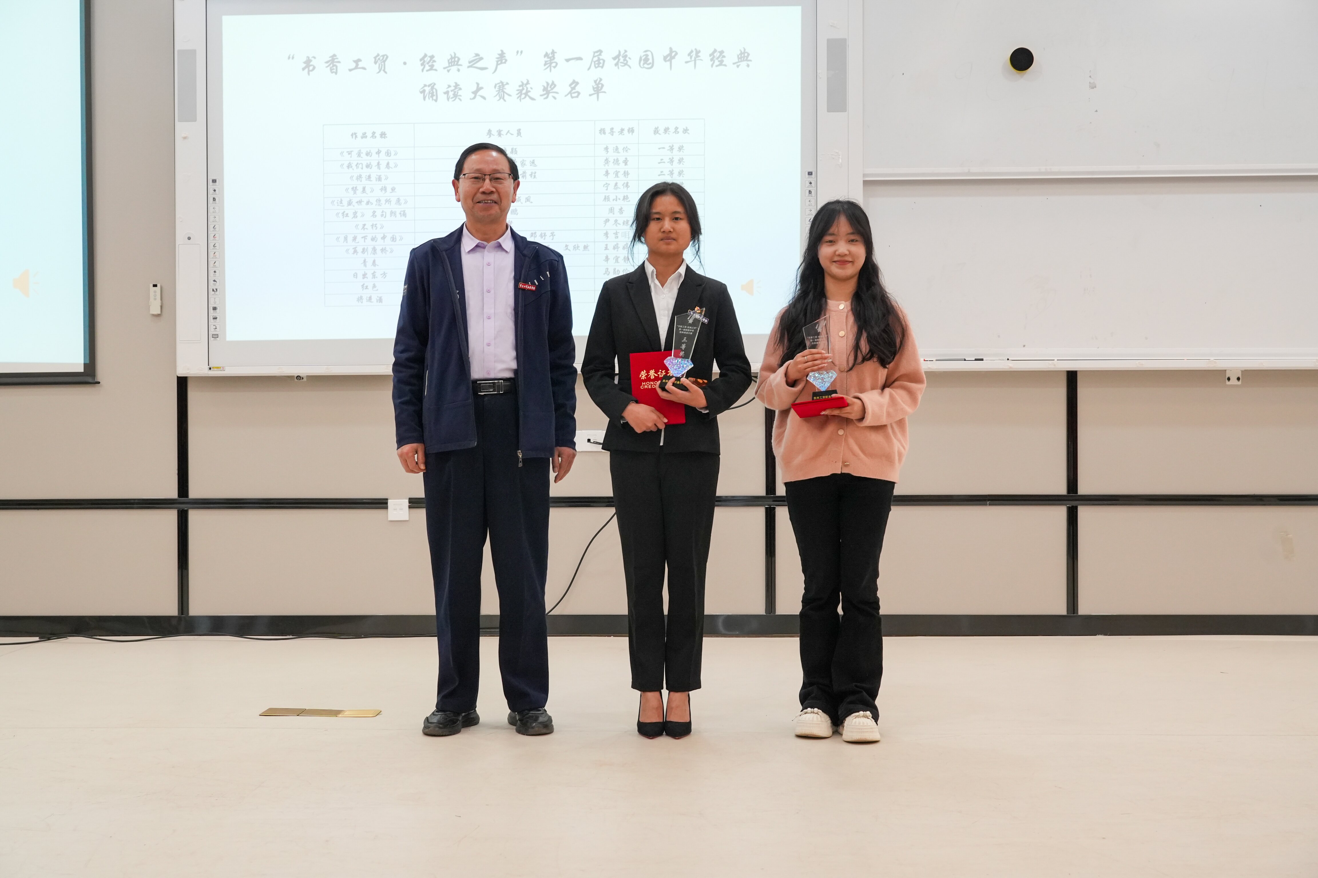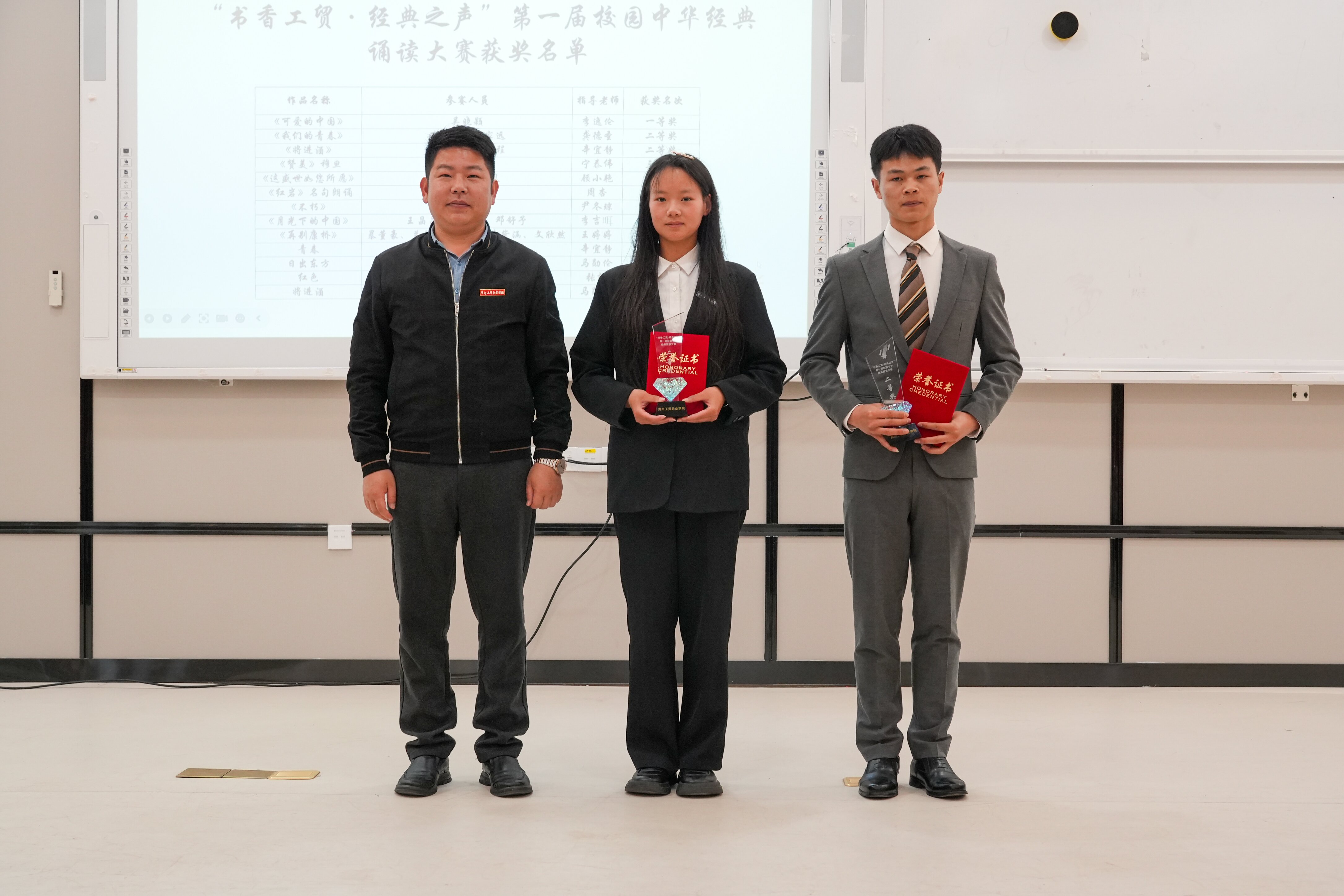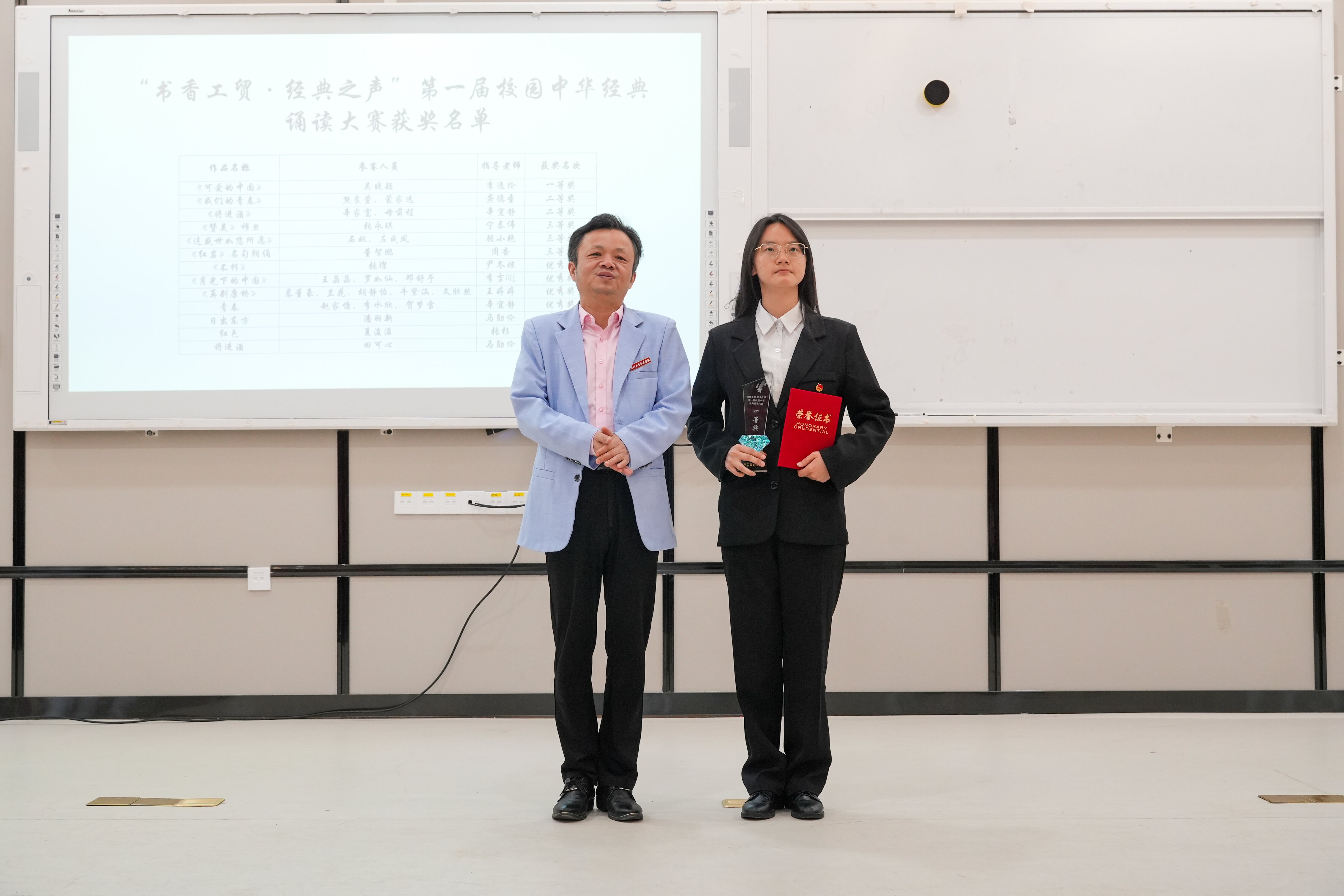 吴志强、江燕虎颁发全校TOP10紧接着,“书香工贸・经典之声”第一届校园中华经典诵读大赛获奖名单相继揭晓。