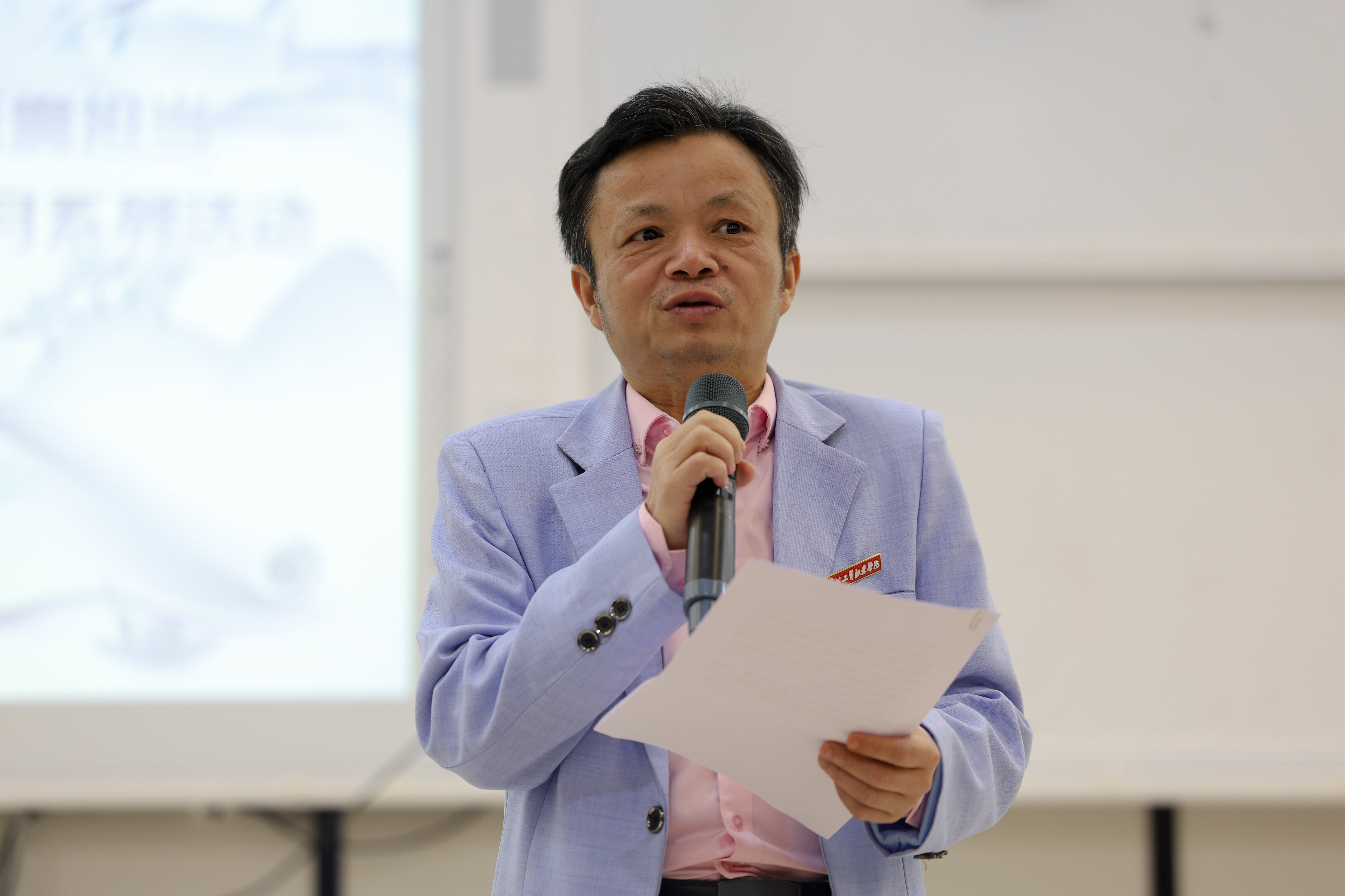 最后,聂立新在总结讲话中指出,本次读书月活动以“青春年少好读书”为主题,旨在引导学生在阅读中培根铸魂、启智增慧,凝聚为中国式现代化担当的青春力量。活动期间,“光影书香·心灵之旅”观影、阅读打卡、读书分享会等系列活动成效显著,充分展现了工贸学子勤学善思的精神风貌,推动了校园文化建设。他强调,读书是个人成长阶梯与民族复兴基石,中国式现代化建设需要青年兼具专业技能与文化底蕴。勉励学生以经典为舟、担当为帆,从经典著作中汲取精神力量,锤炼思维品格,并将知识转化为实践行动。同时希望获奖学生发挥榜样作用,带动全体同学让阅读成为习惯。聂立新表示,读书月活动是学校“三元育人”与“五育并举”的重要实践,未来将持续深化书香校园建设,打造更多品牌活动。最后以习近平总书记对青年的寄语勉励师生,号召大家以书为伴,在中国式现代化征程中书写青春答卷。