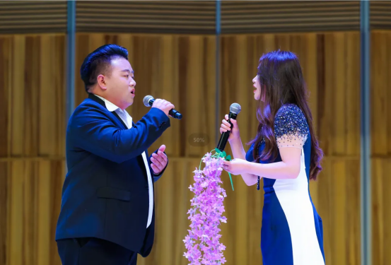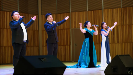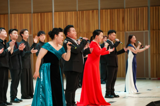 经典歌剧选段男女声四重唱《饮酒歌》的华美乐章响起,演唱者以饱满的热情和默契的和声,将欢乐与祝福传递给现场每一位观众,将现场气氛推向又一个高潮。