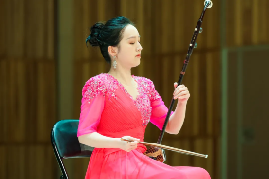 张仲杨轻握二胡弓杆,指尖在弦上跳跃,全情陶醉于二胡演奏《我的祖国》中。龙荣、王方敏、苏晓燕一起合作演唱的《天边有颗闪亮的星》,为观众再现几代人心中难忘的动人旋律。