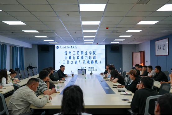 为全面提升后勤保障服务效能,推动行政团队从“事务执行”向“价值创造”转型,6月12日,贵州工贸职业学院后勤行政能力提升培训班在行政中心401会议室正式开班。学校后勤处、采购办、资产管理处、基建处、安全保卫处、网络信息中心全体人员,以及君荣物业、卓越餐厅负责人共30余人参训。开班仪式由校党委委员、副校长宋新乐主持;在首场专题讲座中,贵州辰林工贸技师学院招生就业处主任张善同以“工作之道与灵魂磨砺”为题开展专题培训。