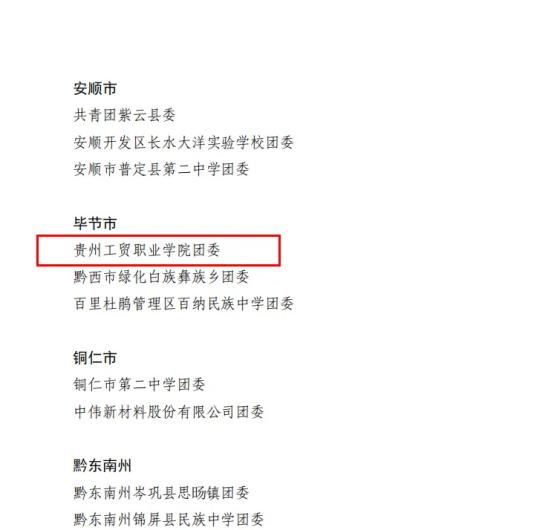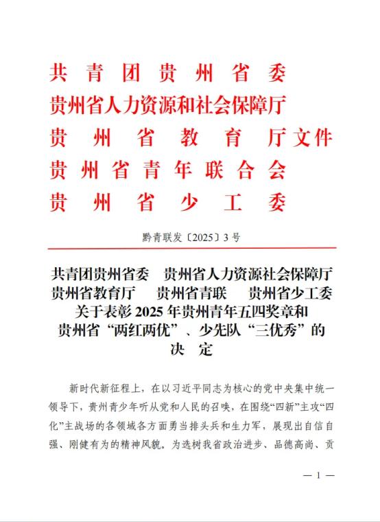 在新时代新征程上,贵州青少年展现出自信自强、刚健有为的风貌,积极投身全省发展。为选树典型,激励广大青少年勇做中国式现代化贵州实践的先锋力量,共青团贵州省委联合省人社厅、教育厅、青联、少工委决定授予2025年贵州省青年五四奖章、2025年贵州省优秀共青团员等称号。在此次表彰中,贵州工贸职业学院团委荣获“2025年贵州省五四红旗团委”!