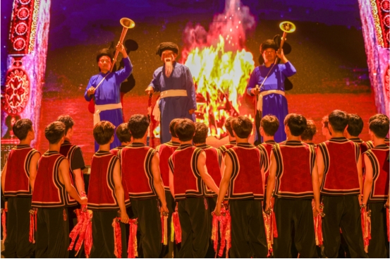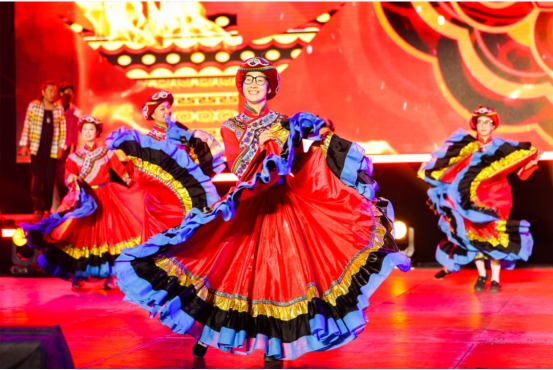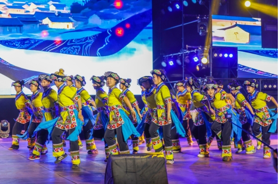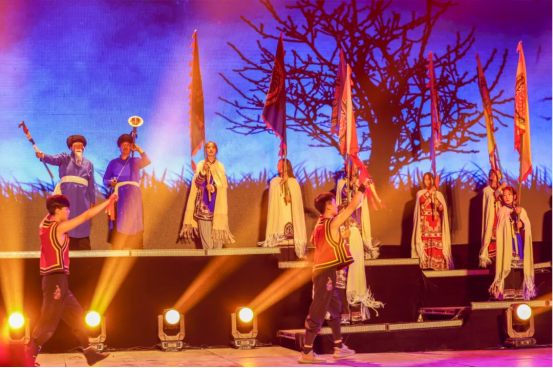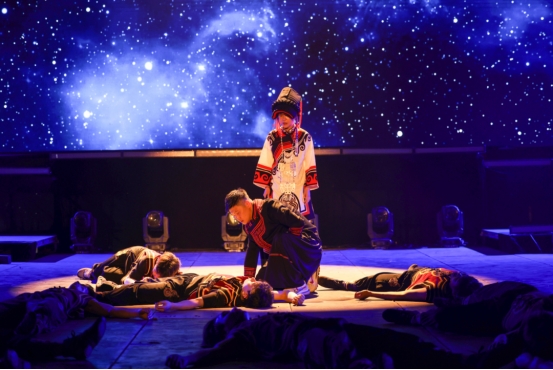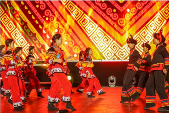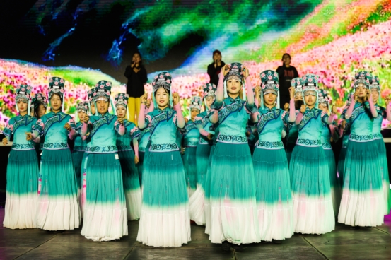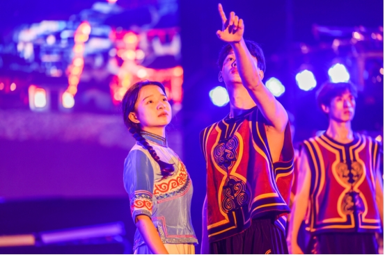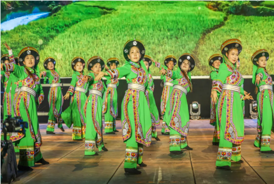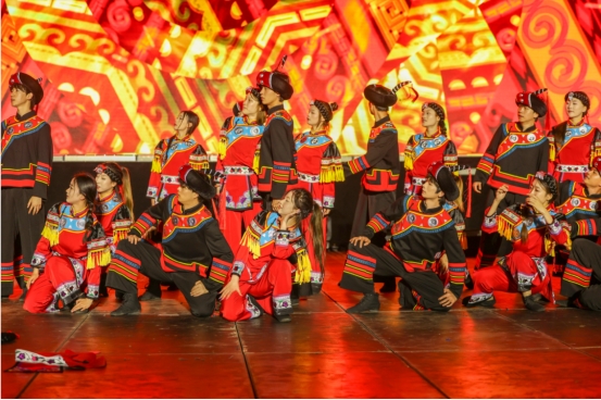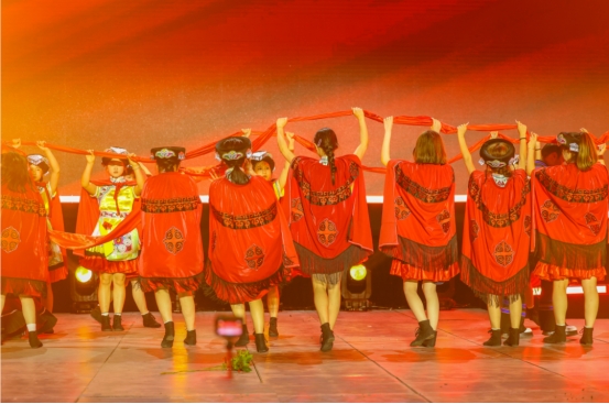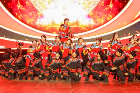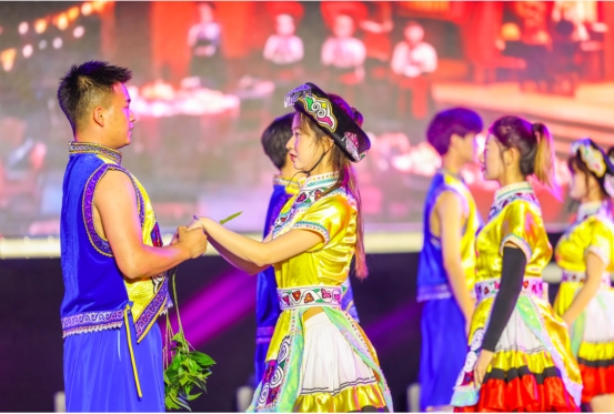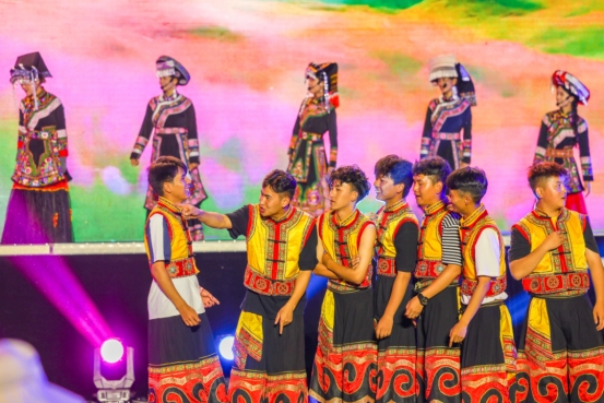 贵州工贸职业学院100余名师生在现场展演《星回耕织》《嫁衣上的月光》《乌蒙情深》《阿西里西山》《阿西里西》等精彩节目,全程70余分钟,我校师生演出时常超过30分钟,获得现场观众及线上观众的一致好评!