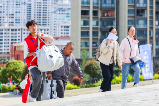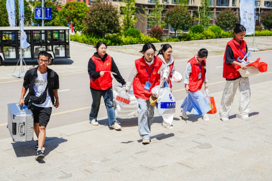校园内,各部门通力协作,为新生提供一站式服务。保卫处加强巡逻,维护校园秩序与安全;宿舍管理中心快速办理入住手续,帮助学生安顿起居;学生志愿者积极引导、帮忙搬运,用热情和微笑让新生感受到家的温暖。