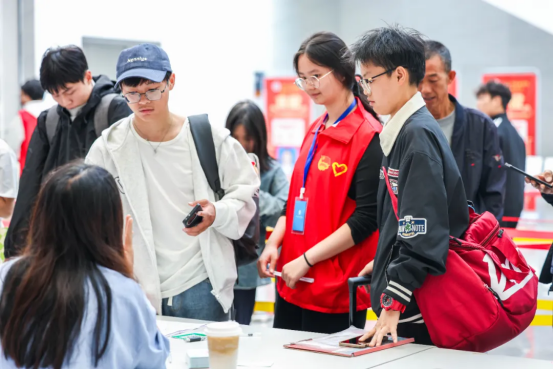 校外接站服务同步展开。学校在贵阳北站、毕节高铁站、六盘水站、贵阳龙洞堡国际机场、草海火车站、威宁凤山客运站等重要交通枢纽均设置新生接待站,保障新生顺利抵校。