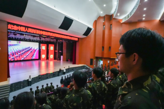 2025年9月3日,北京天安门广场隆重举行纪念中国人民抗日战争暨世界反法西斯战争胜利80周年大会。贵州工贸职业学院组织师生代表在辰海大剧院和图书馆报告厅集中收看收听大会盛况。