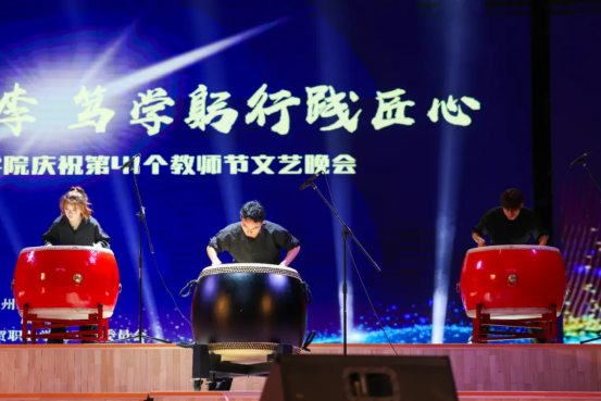 晚会在一曲激昂恢宏的开场歌舞《匠心之门》中拉开序幕,舞者以舒展而有力的动作,象征教育者推开一扇扇通向知识与未来的大门。随后,辰海打击乐团带来的《龙腾虎跃》,以铿锵的节奏击打出教育者日夜兼程、奋发向上的精神气魄,鼓声如心跳,一声声叩击着观众的共鸣。