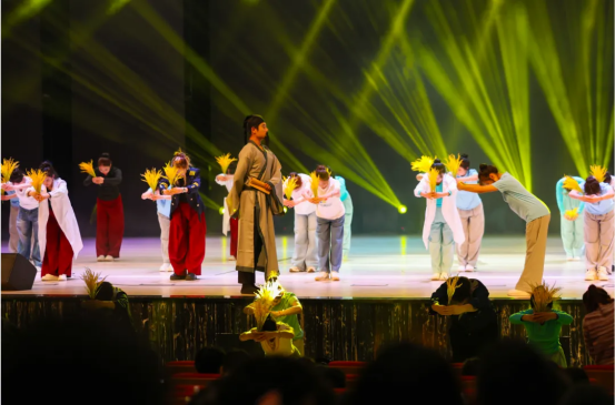李林峰老师的唢呐独奏《一枝花》,以传统音色奏出了教育者特有的热忱与生命力,高亢处如破晓鸣啼,婉转时似低语叮咛,一曲终了,余音不绝。群舞《橘颂》则以屈原笔下“苏世独立,横而不流”的形象为魂,舞者动作刚柔并济,展现出橘树扎根深土、不畏风霜的品格,恰似师者初心如磐、笃行不怠的风骨。