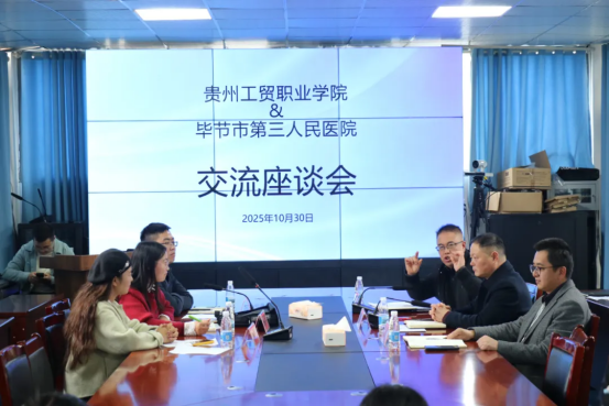 10月30日,贵州工贸职业学院生态医药与康养学院党支部书记贺华、副院长杨丽琴率队到毕节市第三人民医院开展实习生回访调研,毕节市第三人民医院党委副书记、院长李珍武携相关领导接待并召开座谈会。双方围绕“院校合作共育医疗人才”主题就实习生培养、岗位对接及教学实践等方面展开深入交流.