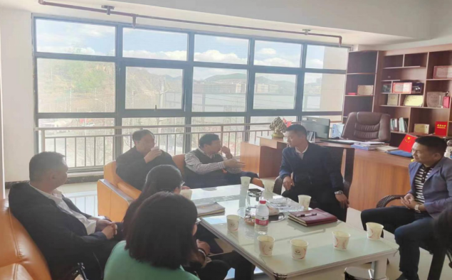 图为贵州工贸职业学院领导与威宁益民电商公司总经理交流探讨
