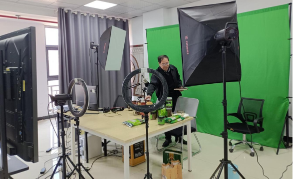 图为贵州工贸职业学院李建萍副校长参观公司直播间