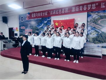 唱响红色经典,献礼百年华诞。为持续营造党史学习教育和爱国主义教育的浓厚氛围,增强同学们实现中华民族伟大复兴梦的使命感和责任感,健康与体育分院于2023年5月11日在学术报告厅举办“传承红色基因,绽放青春芳华”红色经典歌曲歌咏比赛。