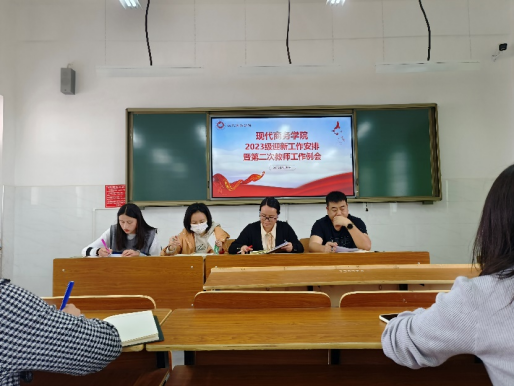 为认真做好2023级新生入学报到和接待工作,8月25日,现代商务学院召开2023级新生入学工作部署会议。院长杨一梅、各部门负责人、辅导员及科任老师参加了本次会议。