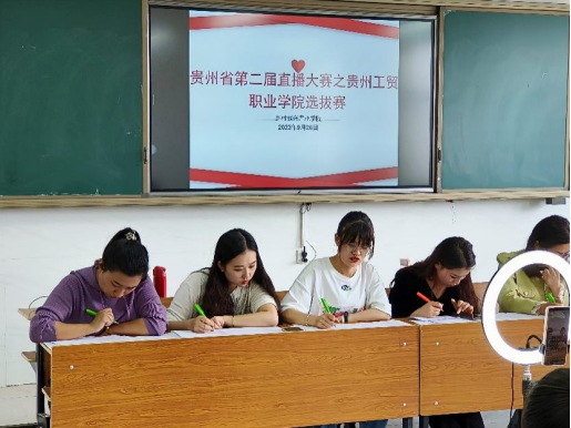 第二届“贵州电商”直播大赛(大学生赛道)贵州工贸职业学院选拔赛于9月26日在三号教学楼举行,本次选拔赛由乡村振兴产业学院(现代商务学院)承办,共有28个团队参赛,每支队伍精心准备,以威宁农特产品为直播推荐品,经过短视频和现场直播两轮评比,最终比赛取得圆满成功。