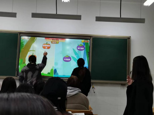 比赛中,每个参赛老师都使出浑身解数,巧设情景、激发兴趣、启发思考,积极调动学生的积极性、主动性。讲课条理清晰,课件新颖生动,语言生动凝炼,风采各异,各具特色。在短短40分钟时间里,充分诠释了学习前移、以学定教、问题导向、学生中心、追求高效的优质课堂。其中,白静老师的课堂气氛热烈,学生争相回答问题,整个课堂内容和时间都安排得非常合理。马敏梅老师的课件设计非常新颖,案例穿插整个教学过程中,还巧妙的引入抖音短视频,以及当下非常流行的游戏做成“知识消消乐”,激发学生兴趣的同时,让一堂枯燥的会计课堂变得更加轻松。安梅梅老师的课堂互动非常有趣,让学生自己举例子,巧妙地穿插内容,让学生感觉到电商就在我们身边。