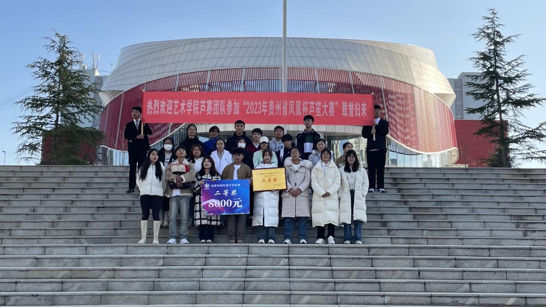 为了提高艺术学院教师教学能力、学生实践能力,秉持“以赛促教”“以赛促学”的理念,使学生对学习、对比赛充满更热烈的积极性。由中国少数民族音乐学会、贵州省文化和旅游厅、贵州省民族宗教委员会、贵州省文联、黔南民族师范学院、贵州省芦笙研究会、贵州省苗学会指导,黔南州文化广电和旅游局、黔南州民族宗教事务局等单位共同主办的贵州省第二届“凤凰杯”芦笙大赛于 11月26日落下帷幕。经主办单位组织专家评审,艺术学院芦笙团队的苗族芦笙舞《滚山珠》以9.8702分在80多支参赛队、1000余人参加的赛事活动中获得全场第二名(二等奖排名第一)的优秀成绩,指导老师是:陶兴海、祝东平。比赛中,芦赛队员们手持芦笙、载歌载舞来到舞台中央,他们的芦声优美动听,让听者身临其境。