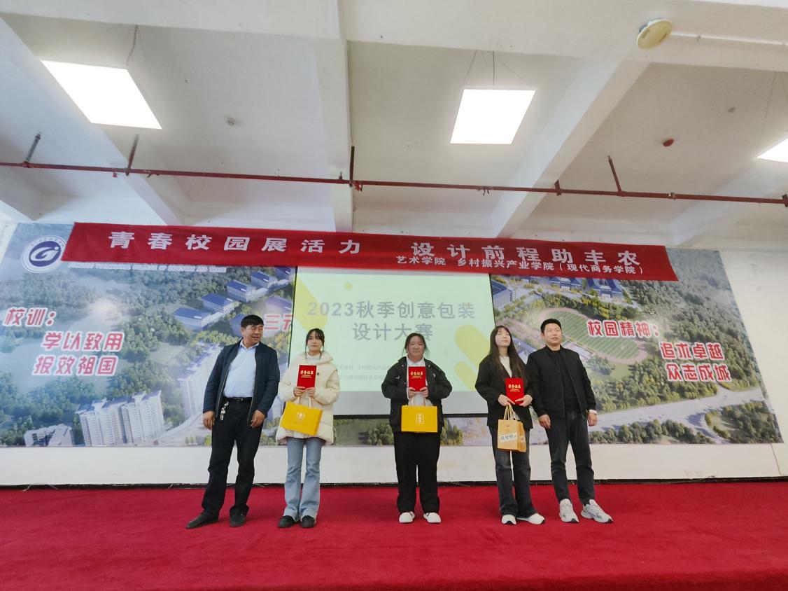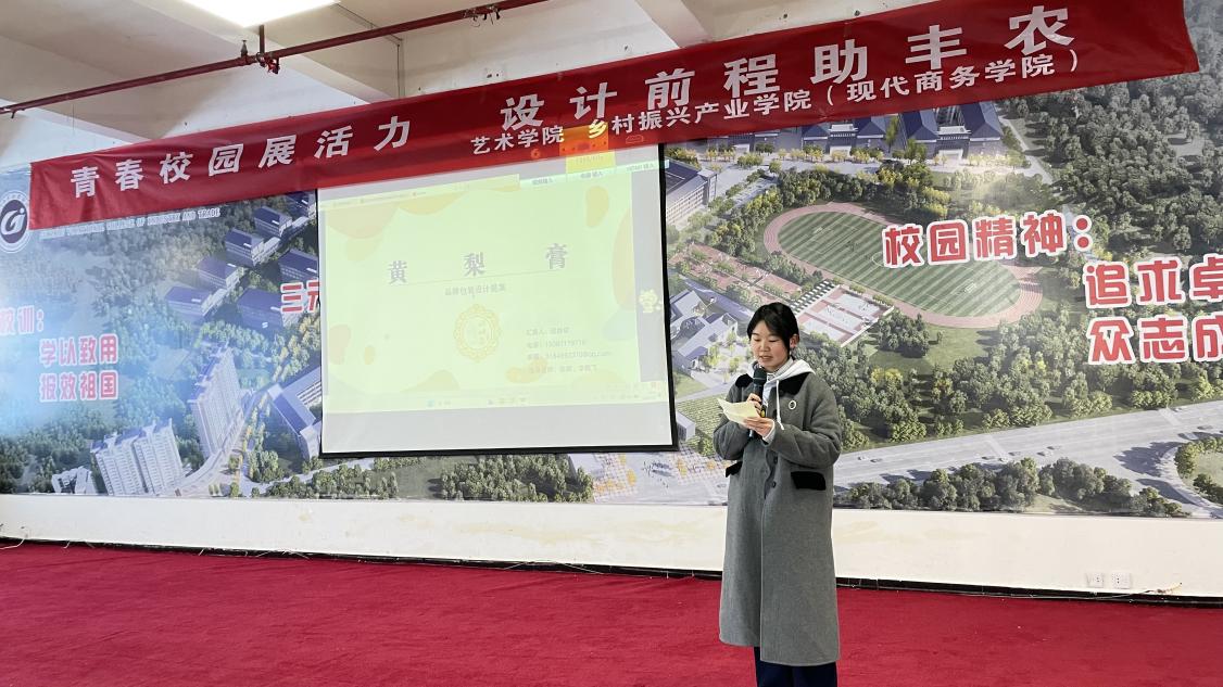 为进一步推进产教融合、校企合作,发挥各专业学生的技能特长,打造创意创新教育,利用地域优势发展地方特色。12月5日下午,艺术学院于学术报告厅举行2023秋季创意设计大赛决赛暨颁奖仪式。进入决赛的全体学生来到报告厅准备等候竞赛,三棵树绿色食品有限公司董事长马关华出席比赛现场,艺术学院广告教研室组长符候强、专职教师黄克松、陈蝶、乡村振兴产业学院(现代商务学院)安梅梅担任此次比赛评委,乡村振兴产业学院(现代商务学院)黄瑶主持比赛。