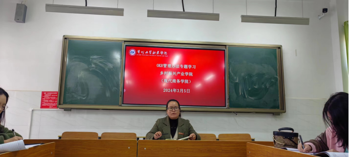近日,我校印发了《贵州工贸职业学院OKR管理办法〈试行〉》(以下简称《办法》)。为做好OKR的使用准备,准确把握OKR内涵,推进升本工作对齐目标、全员参与,高效完成各项建设,切实提高各项建设管理工作效率,提升教师的教育教学能力水平,最终提高教师获得感和成就感。乡村振兴产业学院(现代商务学院)于3月5日下午组织会议,专题学习OKR管理办法、理念与实践。本次OKR管理办法的学习,对明确学院建设目标、梳理工作内容,促进学院建设具有重要意义。