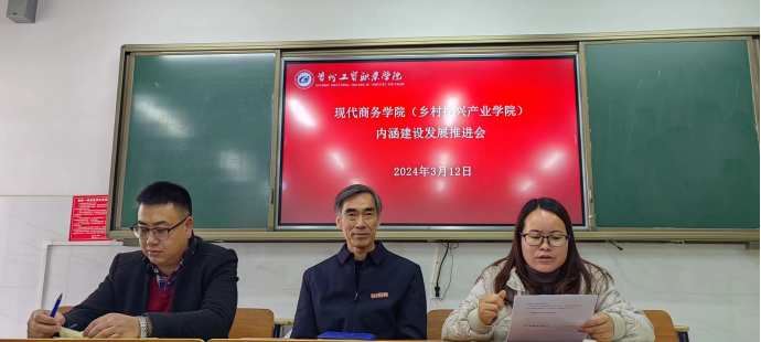 为了提升学院内涵建设,立足新时期新形势、打造专业特色、树立学院品牌,动员学院教职工全员、全力参与到学校的内涵建设发展工作中。3月12日下午,现代商务学院(乡村振兴产业学院)在三教307会议室召开了内涵建设发展推进会。贵州工贸职业学院副校长勒系琳、现代商务学院(乡村振兴产业学院)常务副院长杨一梅、学工科长吴国凡、教务科员张春、各专业负责人及全院教职工参加会议。会议由杨一梅主持。