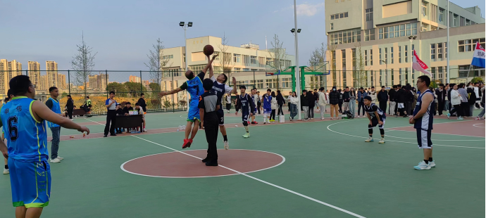 在清脆的哨声中,比赛拉开帷幕。双方队员一跃而起,紧张的气氛顿时弥漫全场,参赛队员们个个意气风发,他们投篮、抓篮板、拼抢、进攻、防守……他们凝心聚力、热血对抗迎“篮”而上,积极进攻,顽强防守,用激情与汗水诠释体育精神!
