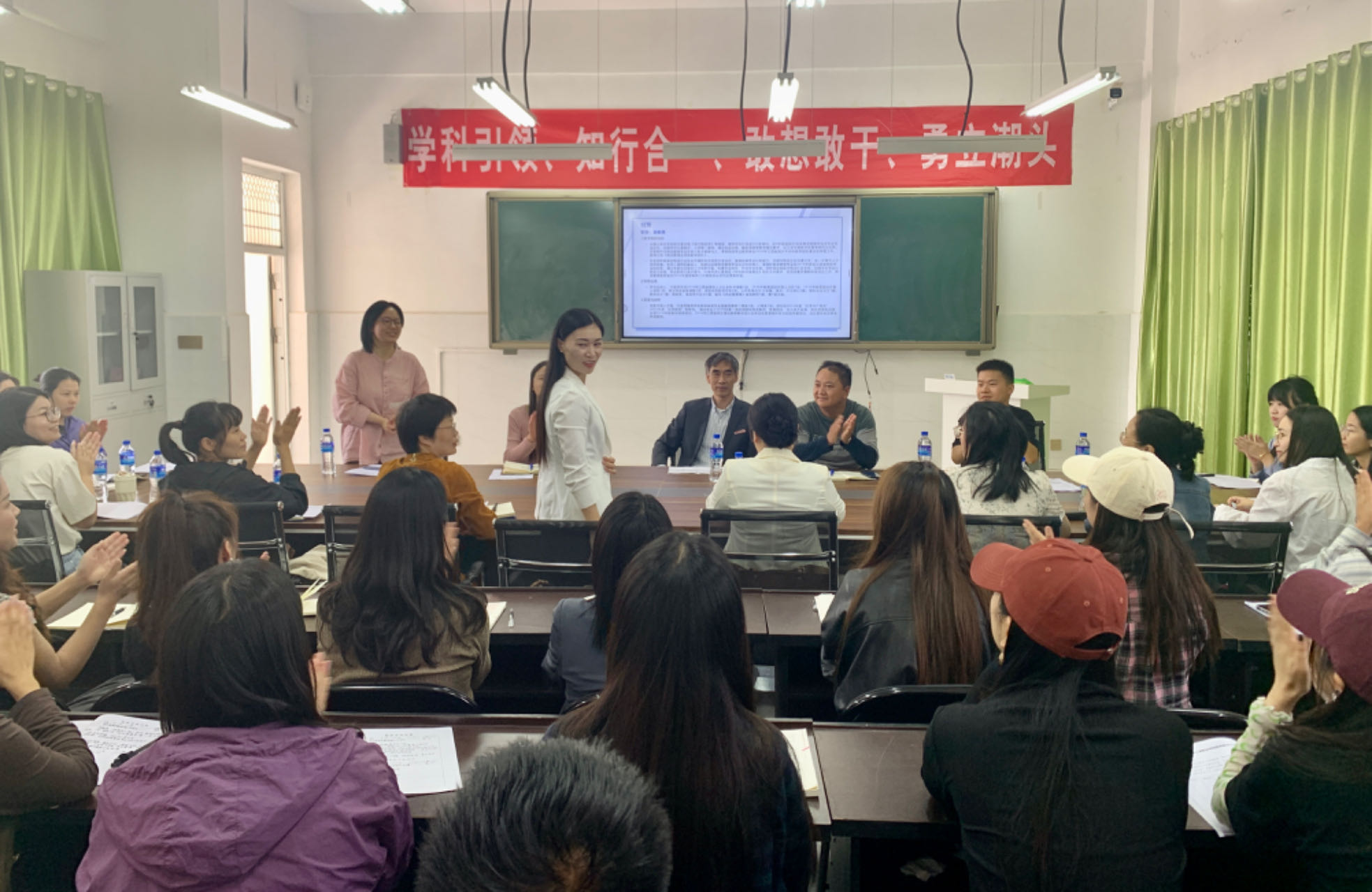教务科赵晗君为全院教师逐一介绍江西应用科技学院的优秀教师们。