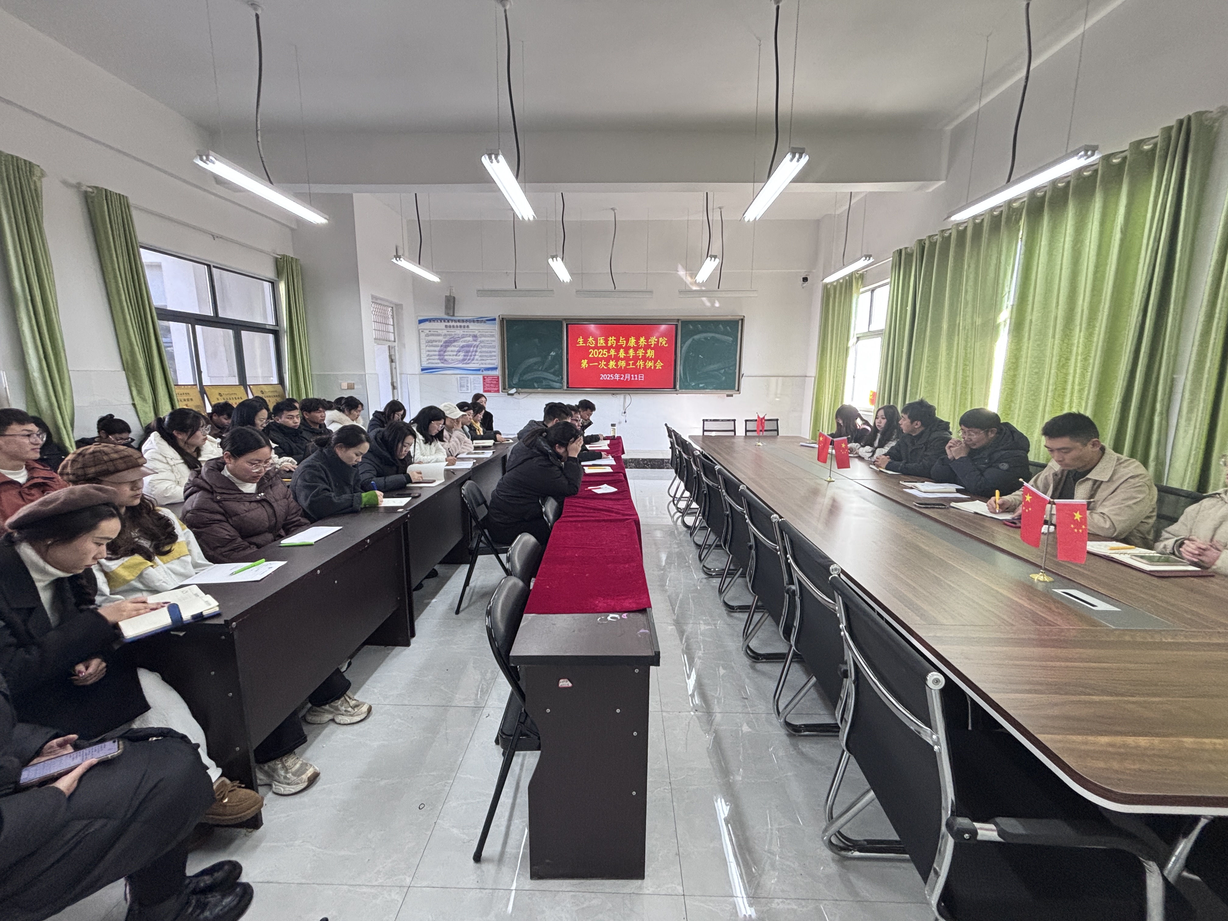 2月11日,生态医药与康养学院在3教东区110会议室召开2025年春季学期第一次教师工作例会,院长阮培均、各科(室)负责人及全体教职工参会。会议由办公室主任王方对主持。