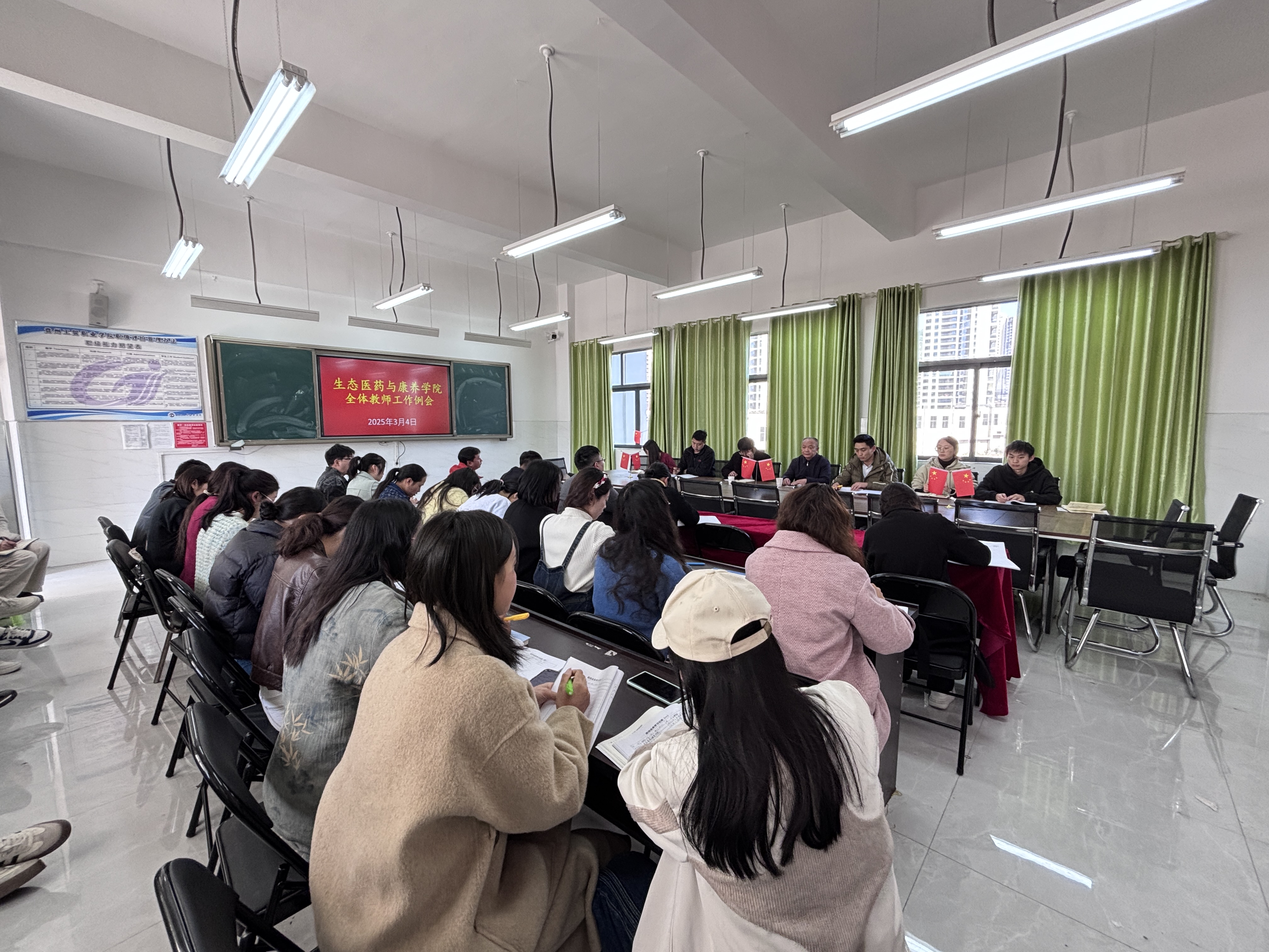 3月4日,生态医药与康养学院在3教东区110会议室召开2025年春季学期第二次教师工作例会,校党委委员、副校长李新发、院长阮培均、各科(室)负责人及全体教职工参会。会议由办公室主任王方对主持。