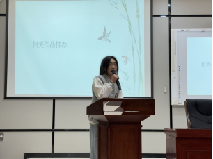 梁皖贻同学通过对《哈利波特》系列图书的深入剖析,以“魔法世界的永恒魅力:《哈利·波特》系列图书”为切入点,该同学从作者的创作历程、每部作品的具体简介以及主要中心思想的剖析等方面展开讲解,使在场同学纷纷沉浸在魔法的世界里,向同学们分享了在复杂的世界里我们依旧要保持初心的读书心得,使在场同学都受益颇深。