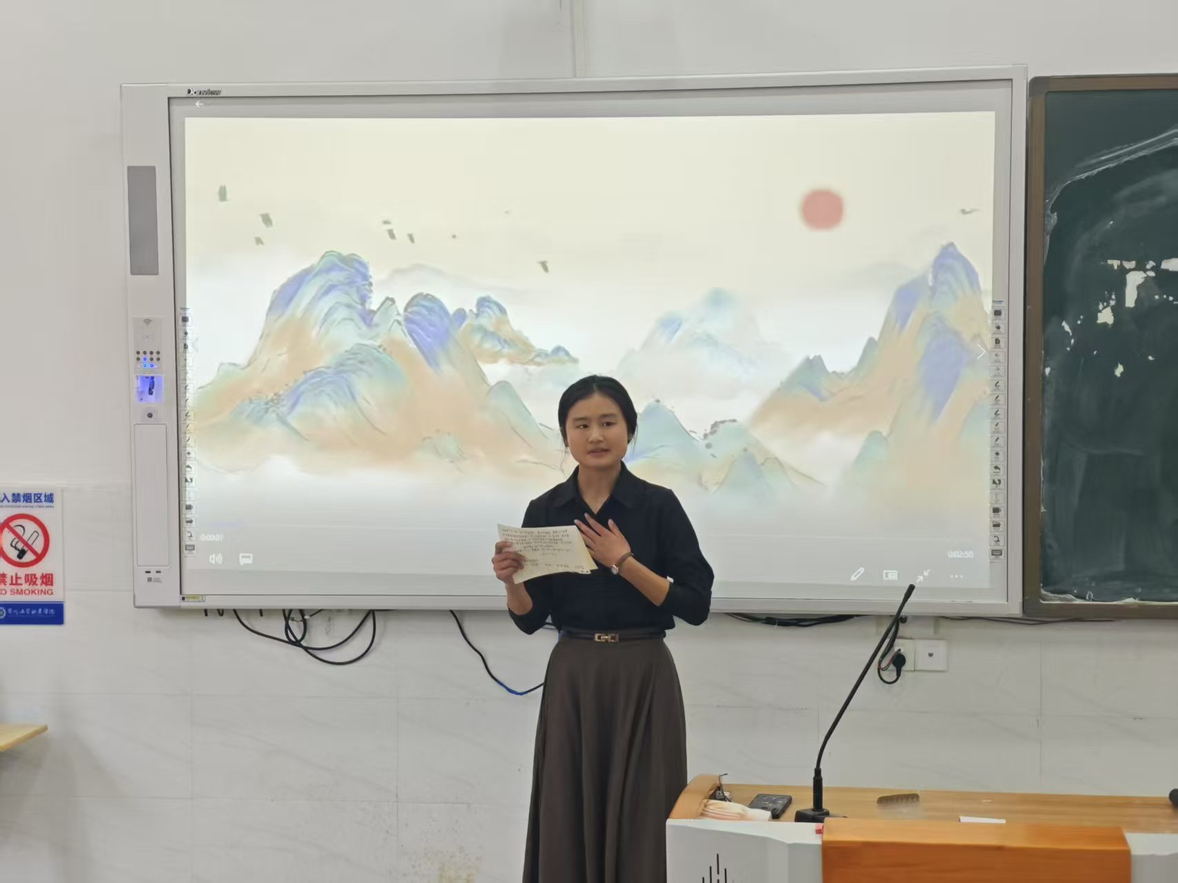 为推动校园文化建设,弘扬中华优秀传统文化。4月16日,国防教育与体育学院在一教五阶教室开展“书香工贸·经典之声”第一届校园中华经典诵读大赛院级选拔赛。本次大赛以诵读中华经典诗文为主要内容,旨在提升学生的语言表达能力,增强文化自信,营造浓厚的书香校园氛围。评委由学院党支部书记龚德圣、教务科长施健及辅导员组成