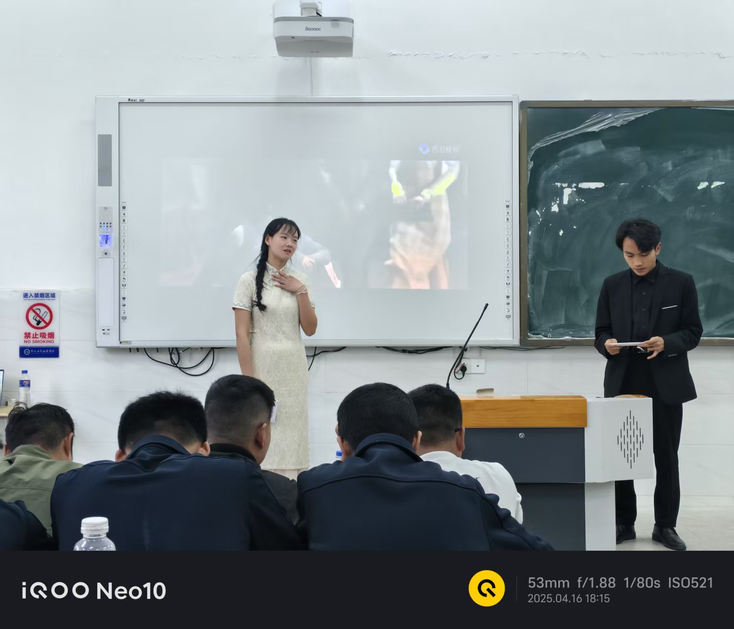 大赛得到了全院师生的广泛关注和积极参与,经各班级层层筛选,共有6支队伍参加本次院赛。比赛现场,选手们以饱满的热情和精湛的朗诵技巧,演绎了《我们的青春》《长安三万里》《月光下的中国》等经典篇目,将中华经典的魅力展现得淋漓尽致。他们的声音或高亢激昂,或低沉婉转,情感真挚而充沛,深深打动了现场每一位观众的心。