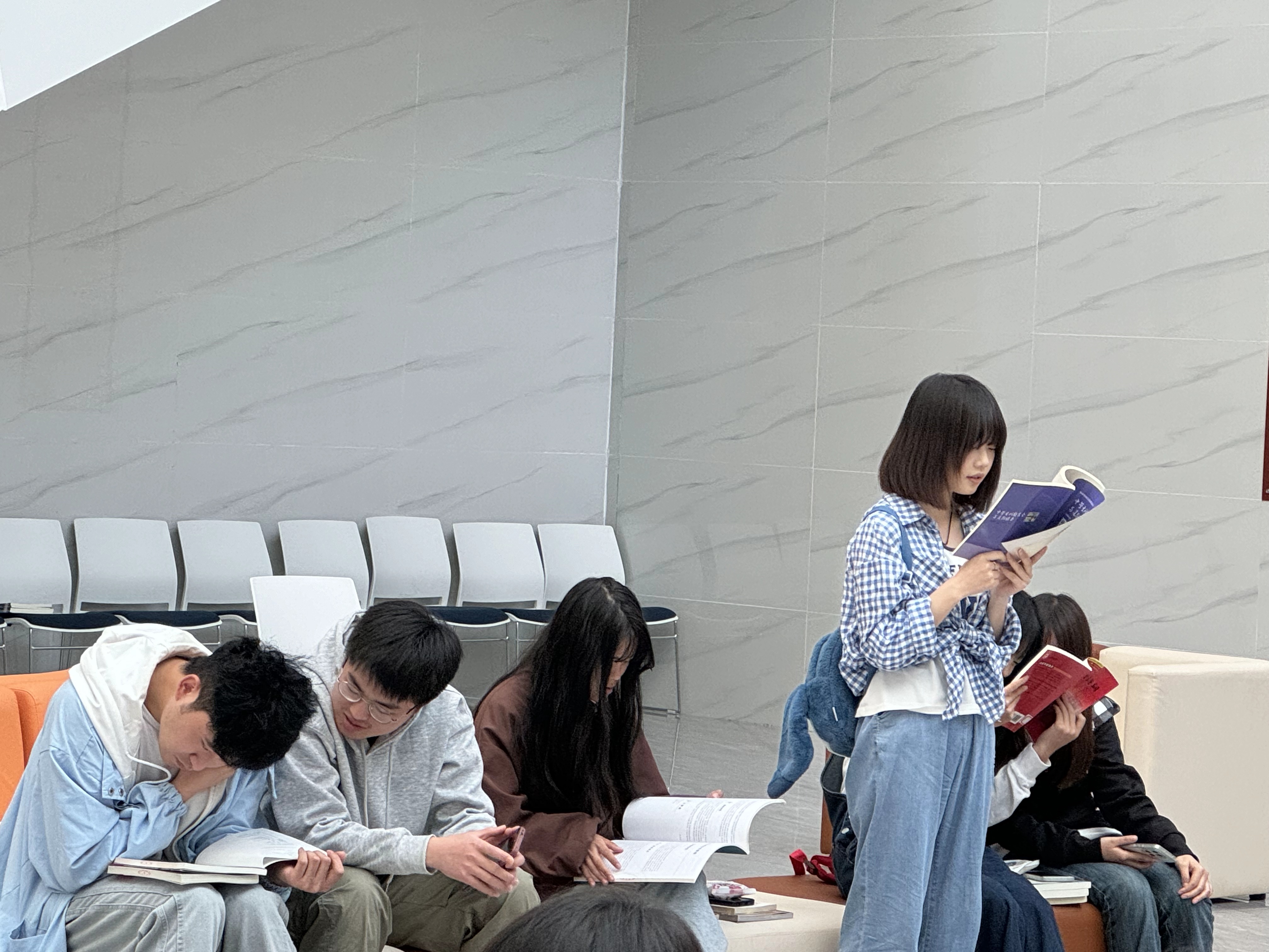 分享环节,大家畅谈诵读感受与作品理解,思想的火花在交流中碰撞。24级药学2班杨尘露同学在分享时难掩兴奋之情,她激动地说“这种盲盒诵读形式太有趣了!本以为会抽到熟悉的作品,结果是一篇陌生的外国诗歌。准备诵读的过程,不仅让我领略了异域文化魅力,更挑战了自己的表达能力。”每个人都从不同的视角出发,分享着自己独特的见解,现场气氛热烈而融洽。通过这样的交流,大家对文学作品的感悟愈发深刻,仿佛打开了一扇扇通往文学新世界的大门。