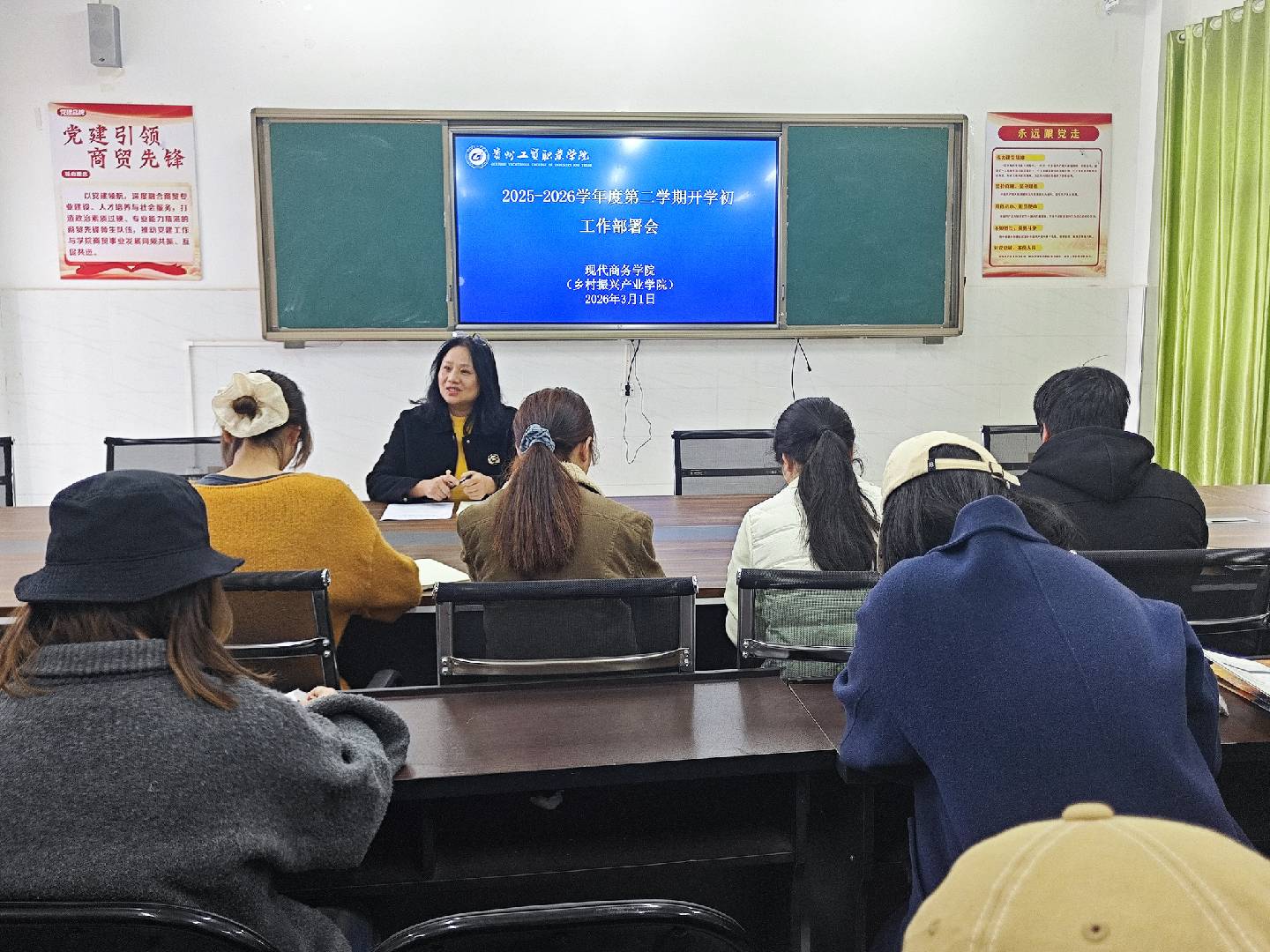 为确保新学期各项工作平稳有序开展,明确工作方向与重点任务,3月1日,现代商务学院(乡村振兴产业学院)在三教东区307党员活动室召开2025-2026学年第二学期开学初工作部署会。学院党支部书记、院长黄教珍主持会议并作核心工作部署,全体教职工参会。